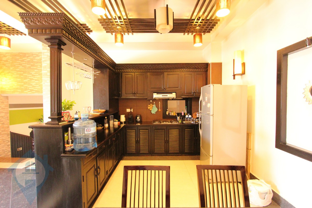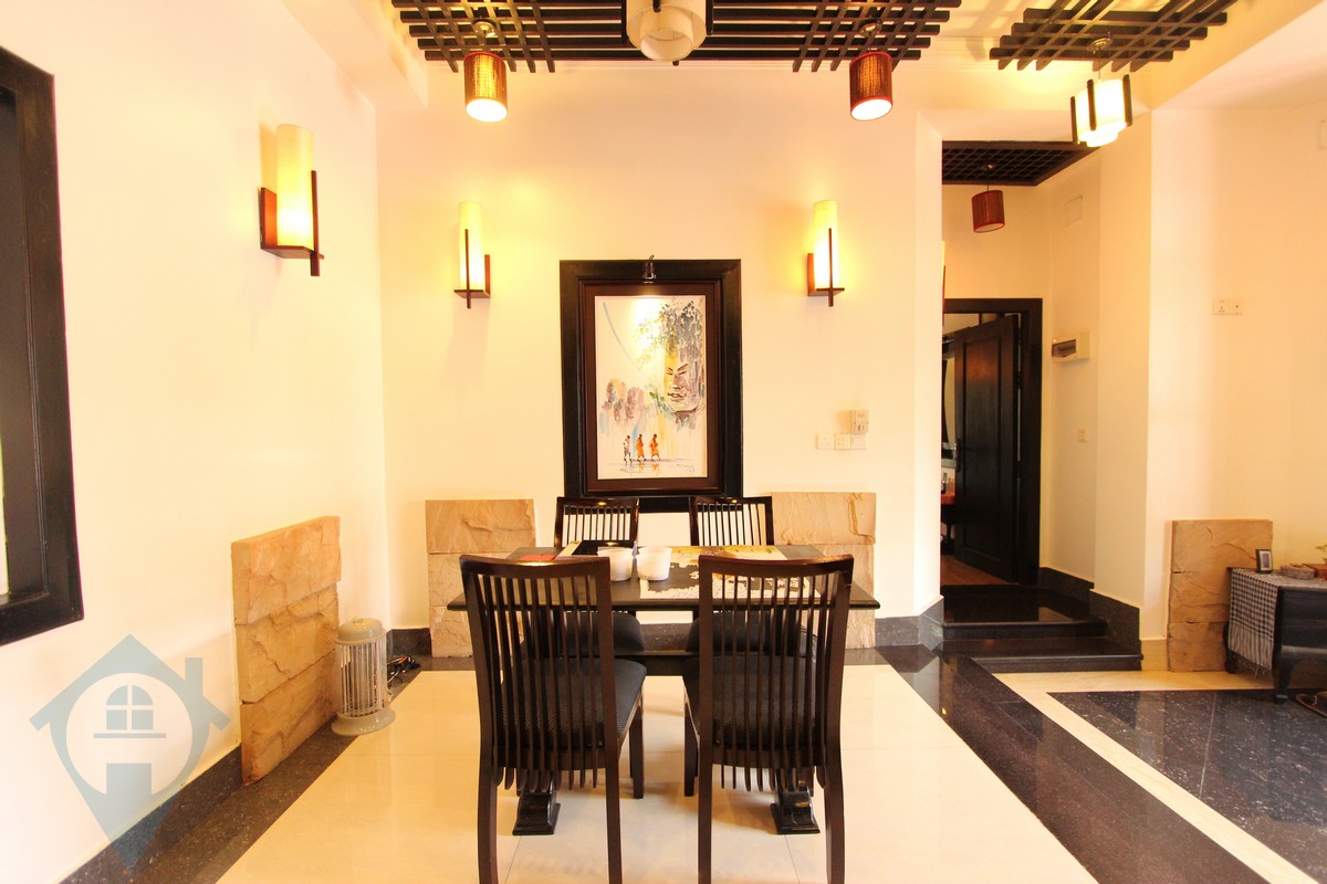 This contemporary western style two bedroom apartment for rent is located close to the landmark Royal Palace in Phnom Penh. The apartment is fully furnished and has lots of natural light. The kitchen is fully equipped and leads to sunken living area. There is a good sized balcony complete with table and chairs. The building has 24 hour security. Please quote property code : PRE001014
