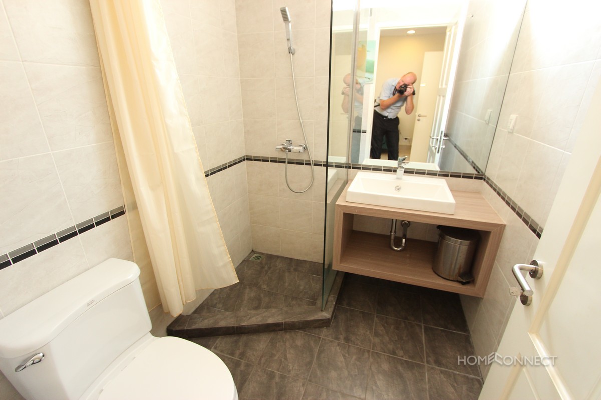 This one bedroom apartment is located in a recently constructed apartment block, close to the Russian Market, that features 24-hour security and secure parking on the ground floor. The property comes fully furnished with a well equipped kitchen, one bathroom and a singe large bedroom. This property also has a balcony off the main living area that provide sweeping views of southern Phnom Penh.
