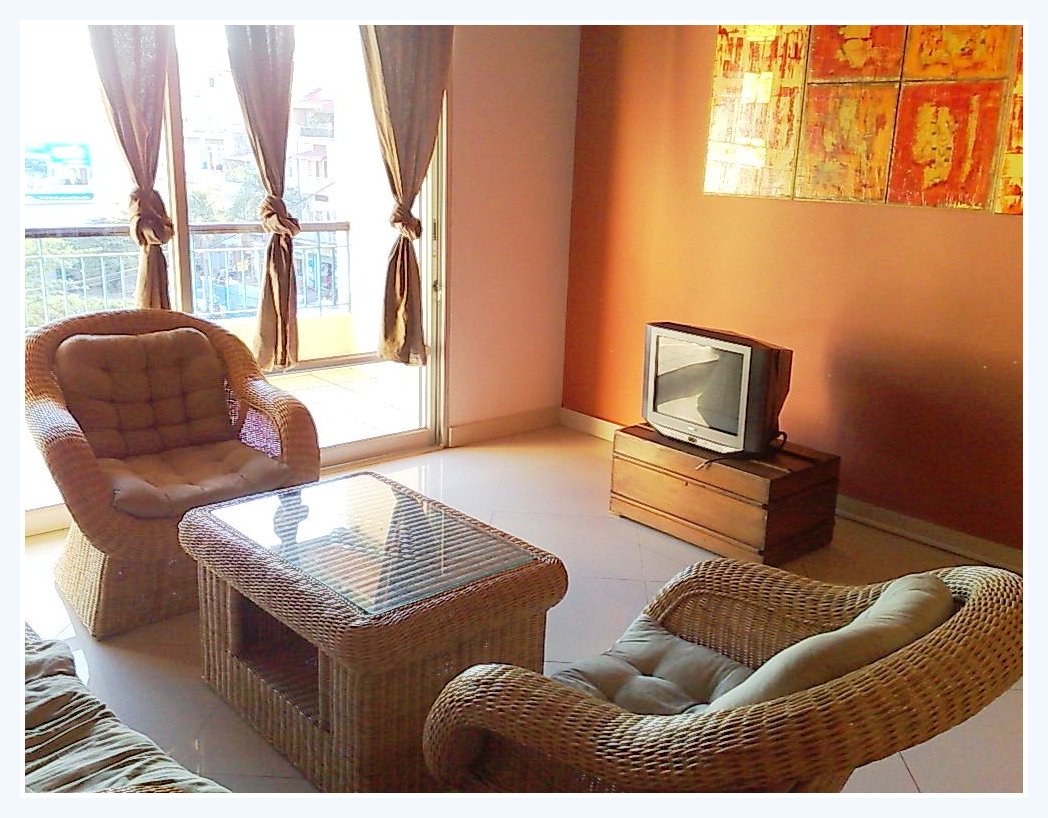 This cute apartment has a great living area onto a large terrace, an open kitchen and a large bay window of 4 meters. The floor above, bedroom with king size bed and a modern bathroom This apartment of 80 sqm, is very quiet and located on street 118 Fully furnished, : SMART TV, lounge set, table and water hyacinth chairs, fridge, gas Stove and oven, kitchen extractor, washing machine, toaster, coffee machine, kettle, kitchen wares, dishes, sheets, ….. air con and fans. The monthly rent included wifi (Smart tv, Speed 15 mb, not the one in the picture) and cleaning once a week Electricity: local rate (Access to the apartment is a common stair case in Cambodian neighborhood) Please mention the code N° 11C Contact by email : English or French Contact by phone : English or French or khmer