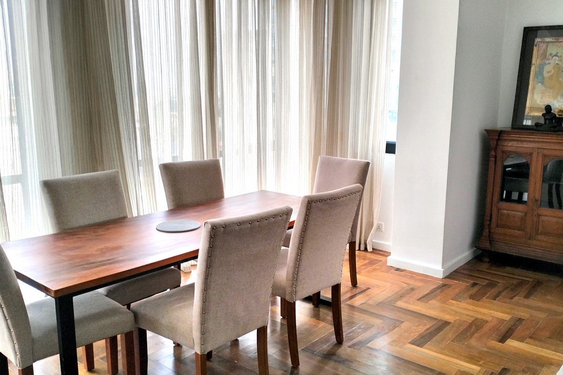 Ideally located, near Aeon Mall 1 and BKK1, stunning 3-bedroom apartment is available with all the comfort, a swimming pool on the roof and a fully equipped gym. Modern and elegant, perfectly furnished in European style and a touch of antique Khmer furniture, it offers a well-equipped kitchen open to a large dining room – living room with an incredible ceiling high. 3 large bedrooms including tactile opening wardrobes and bathrooms well arranged Very spacious place with lots of natural light, no wasted space, equipped with fans and central air conditioning, but adjustable for the different room Security and private access to a common pool and gym on the rooftop. Rent includes wifi and cleaning Fully furnished: sheets, towels, dishes, cutlery, oven, microwave, toaster, … Smart tv with magic remote control, Nespresso machine, …… Parking space Please mention code N°508 WhatsApp or telegram +855 12 214 798 (English or French) khmer (only audio message)