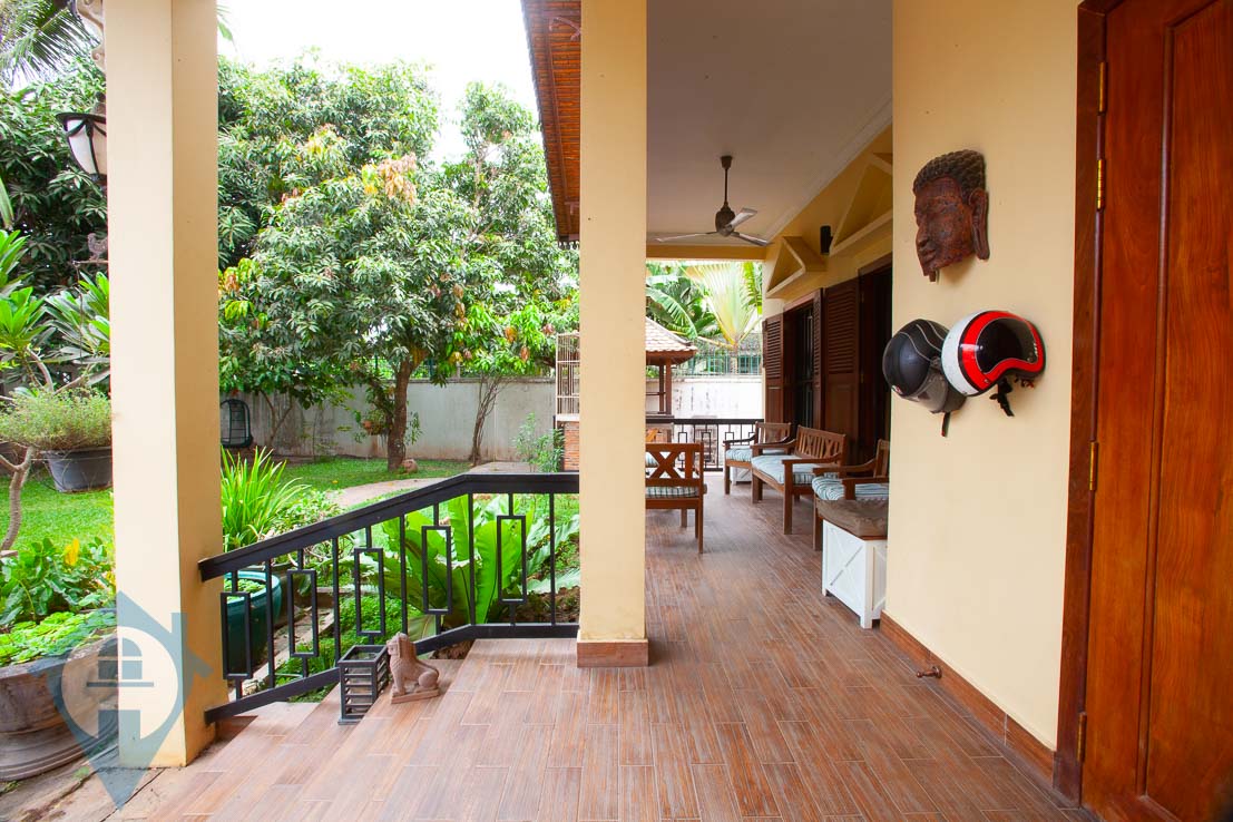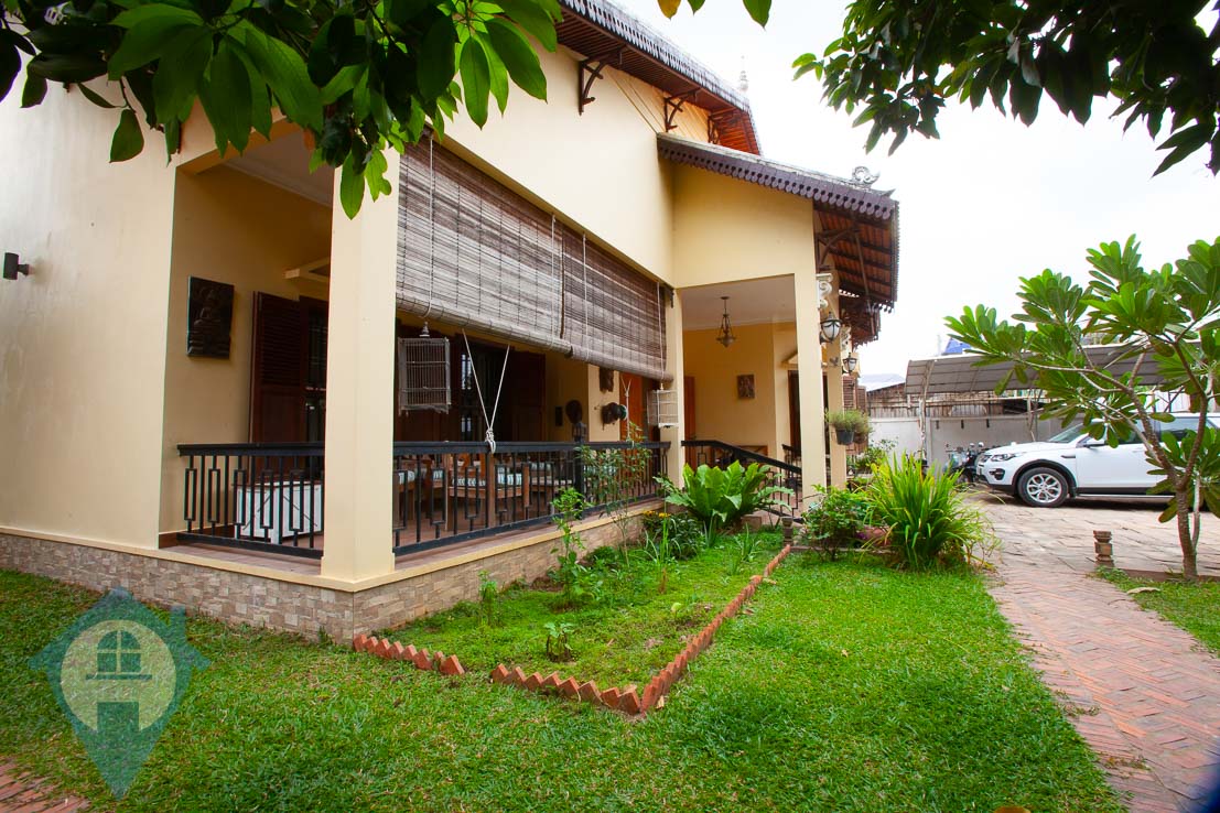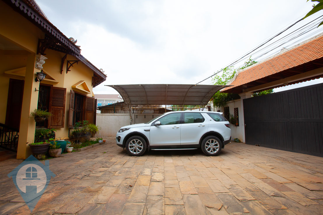 This family sized four bedroom villa for sale is located in the town of Ta Khmau just south of Phnom Penh. The villa has been finished to a high standard and comes with 4 good sized bedrooms and 5 bathrooms. The property also benefits from a spacious fitted kitchen leading into a bright dining room. The villa has two large living area’s and the grounds extend to 880 sqm complete with mature gardens and enough space to securely park several cars and many motos. Please quote property code : PRE001326