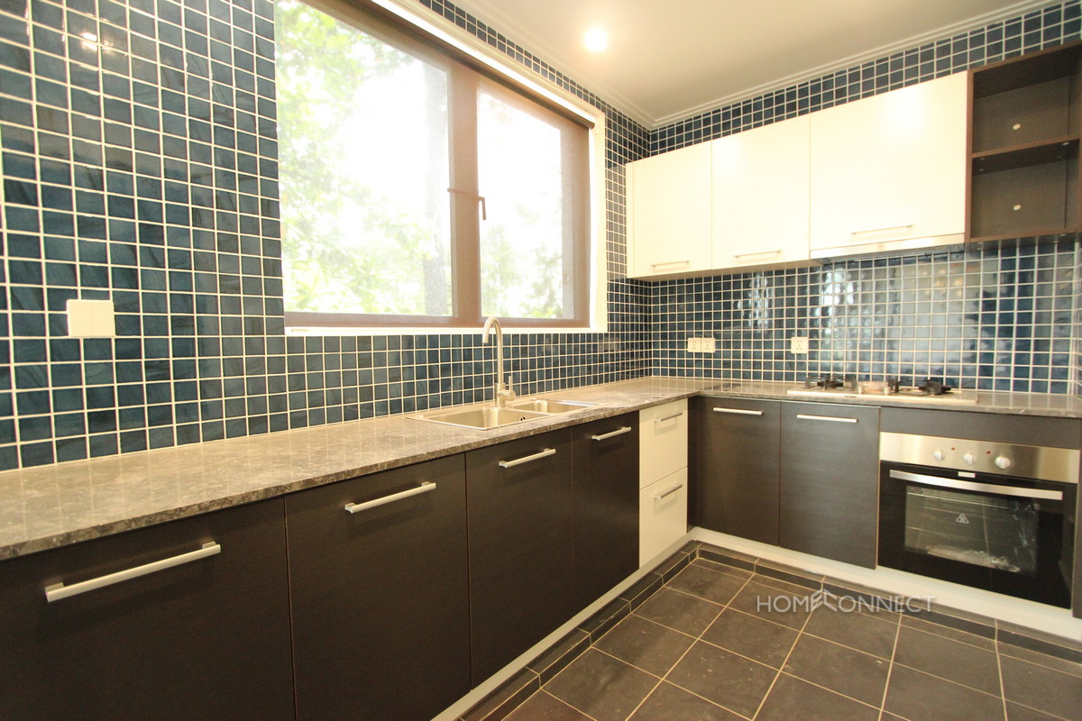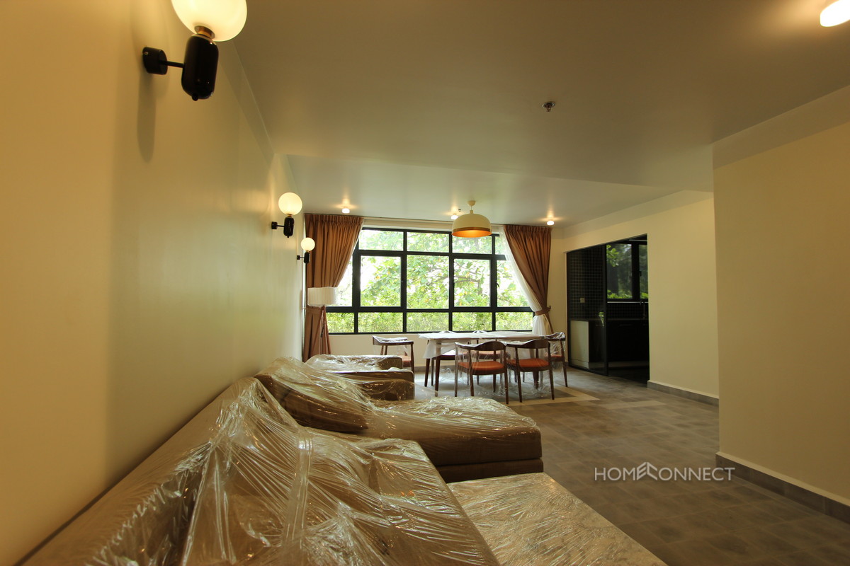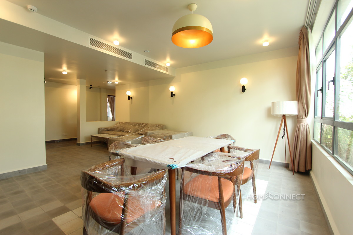 This spacious four bedroom family sized apartment for rent is located close to the famous landmark Wat Phnom in the north of the city close to several Embassys and the French international school. This newly renovated building near the historic Wat Phnom in the north of the capital Phnom Penh offers modern city living with high end western style and design. The apartments are both spacious and bright and comes with 24 hour security and secure parking. The units are tastefully decorated and both the kitchens and bathrooms are western in design. The apartments are fully serviced and an experienced management team in on hand to ensure your stay is a pleasant one. The building also comes with a swimming pool and gym. Please quote property code : PRE000966