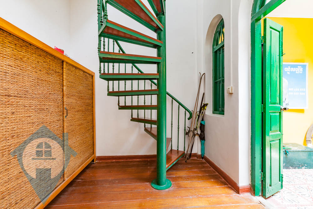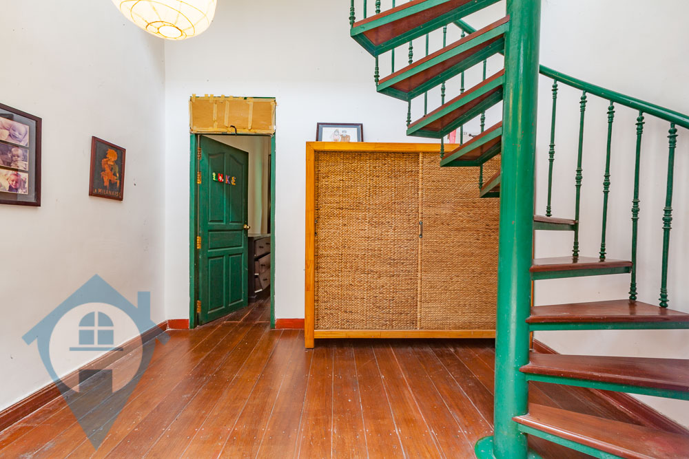 This three bedroom duplex apartment is located in a historic French colonial building near riverside in the Daun Penh district of Phnom Penh. The apartment is on the 2nd & 3rd floor and comes with three bedrooms and one good sized bathroom. The main room is spacious and consists of a living room / dining area and kitchen. There is a spiral staircase that leads to the top bedroom and a private room terrace. The entrance is secure and straight from the street and has parking for a moto. The building is one of a few French colonial buildings that can be rented as a private residence and maintains mainly of the original features making it a truly unique living experience. The flooring is a mixture of period tiles and hard wood flooring. Please quote property code : PRE002156
