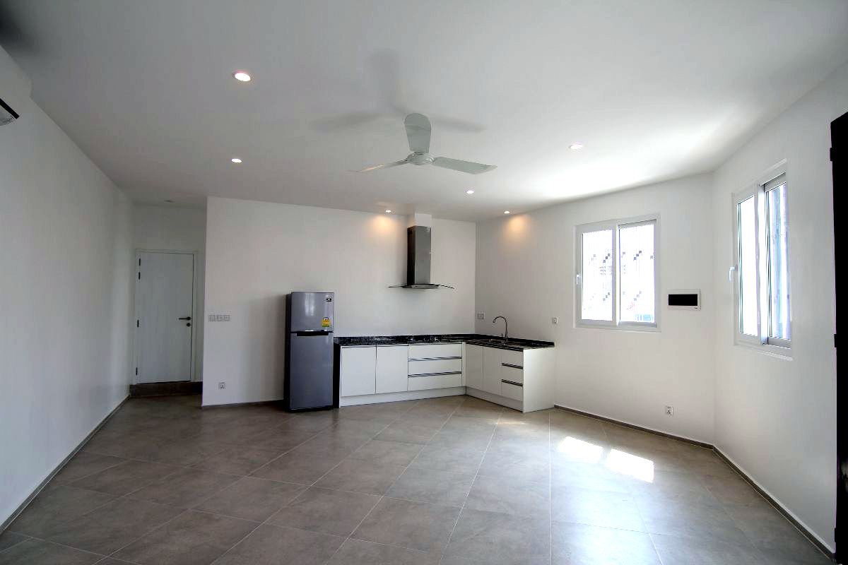 *** Price reduced from $83 200 to $68 500 !!! SOLD SOLD !!! Located 1 block from Norodom boulevard, in an old builing, solid and well renovated property, electrical and plumbing redone to western standards, staircases clean, doubles glazed windows, large living area with air con and fan, open kitchen equipped (fridge, freezer, gas stove, kitchen extractor), bedroom with air con and fan, dressing, bathroom with separated toilets. Very good return on investment (rental price $600) Before $70 400