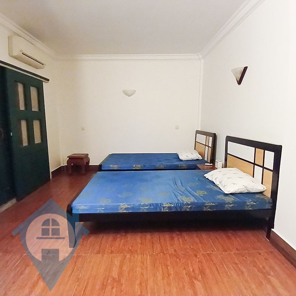 This two bedroom ground floor apartment for rent is located in the central district of Boueng Trabek in Phnom Penh. The property is the lower half of a small villa and comes with the ground floor area to the front of the villa as a private courtyard. The property comes with two bedrooms and three bathrooms. There is parking for several motos on site. Please quote property code : PRE002190 For a viewing contact Bobby on WhatsApp / Telegram on +85577424840