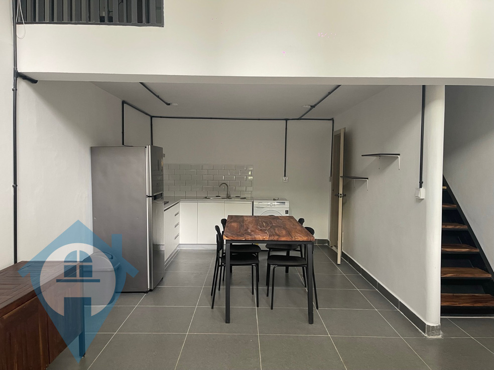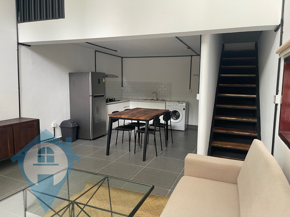 This ground floor studio apartment for rent is located within walking distance of The Royal Palace in Daun Penh in Phnom Penh. The unit is part of a villa which has been subdivided into separate apartments, this one is on the ground floor with the bedroom above. The building benefits from a communal swimming pool, garden and secure parking. Please quote property code : PRE001951