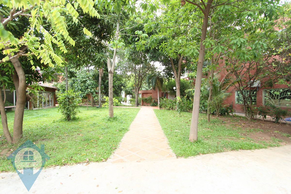 This ground floor four bedroom apartment for rent is located on a private stretch of the Mekong river in Chroy Chungva in Phnom Penh. The property is located in a secure gardened compound shared with other expat families. The property has four spacious bedrooms and four bathrooms and a modern kitchen. There is secure parking for cars and motos and 24 hour security. The unit is spacious and bright and the area is very quiet. By car you can be over the bridge in Wat Phnom is around five minutes. Please quote property code : PRE000996
