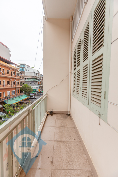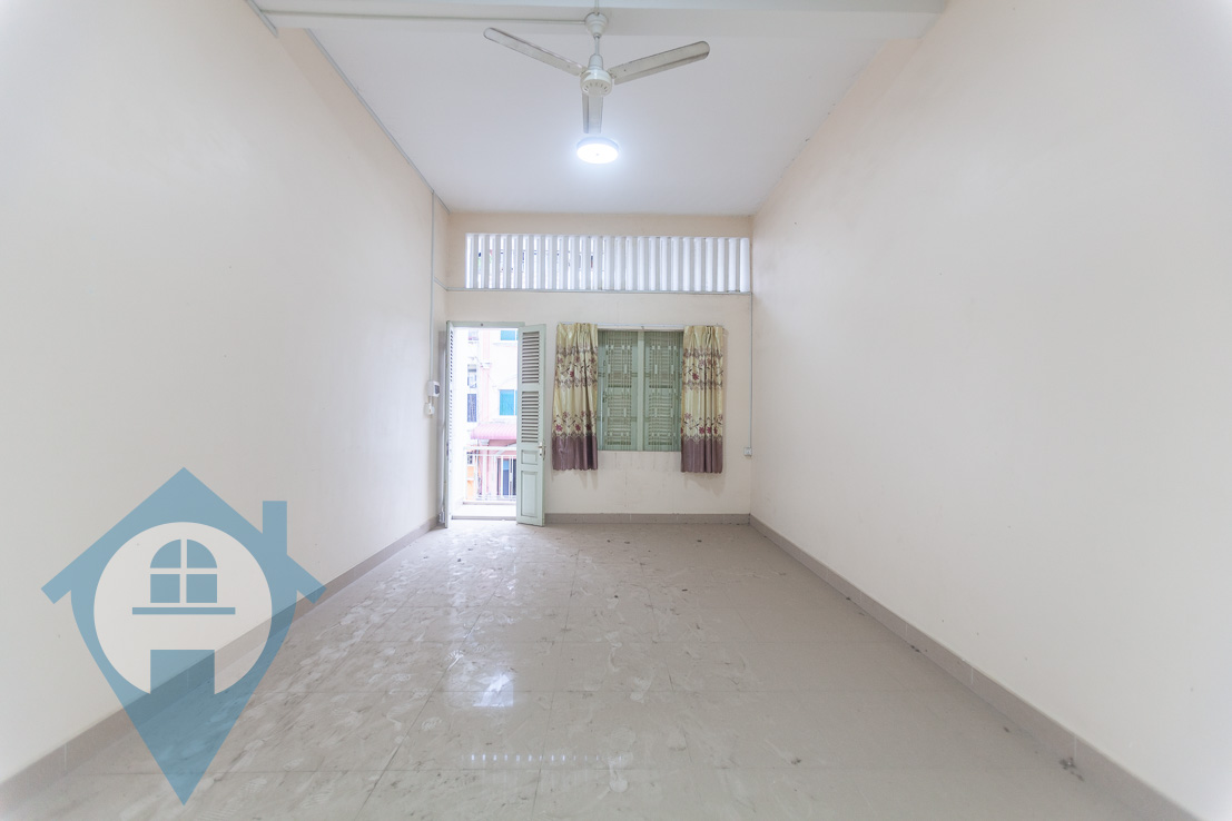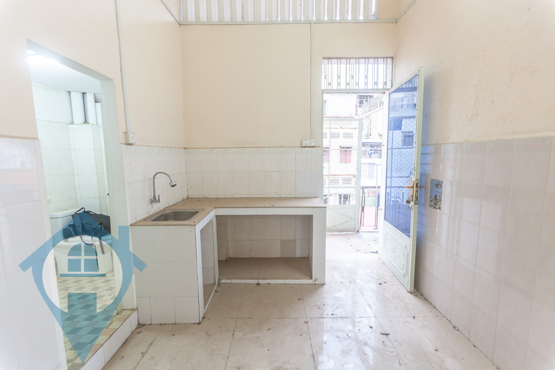 This one bedroom apartment for sale is located on a quiet street bear the famous Riverside in Daun Penh district Phnom Penh. The apartment is in need of some modernization and comes with a main bedroom plus a mezzanine level which can be used as a second bedroom, there are also two bathrooms. The apartment is accessed via an open alleyway and a open communal stairwell. This property comes with a hard title. Please quote property code : PRE001843