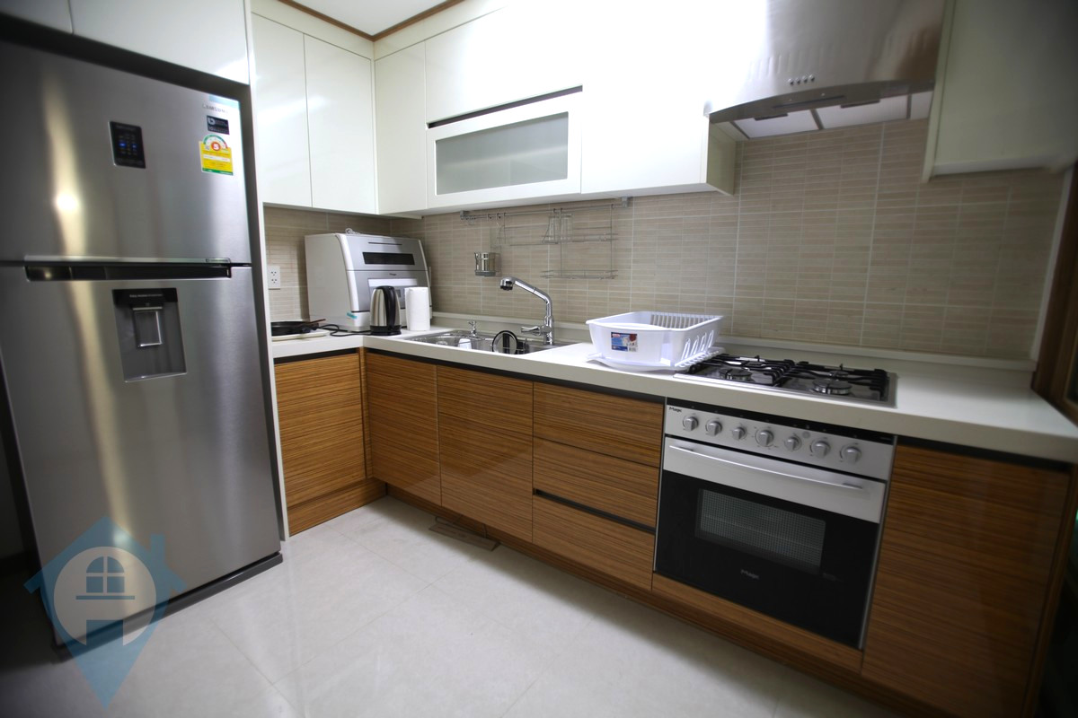 This high floor two bedroom apartment for rent is located in the De Castle Royal building in the heart of BKK1 Phnom Penh. The building offers the highest level of amenities from a large swimming pool, fully equipped gym, coffee shop / restaurant, mini mart and a children’s play area. The building has secure parking and 24 hour security plus a professional management team on site. The apartment enjoys stunning panoramic views over the city and has a balcony with table and chairs to enjoy the view from. The rooftop of the building is communal garden so all tenants can benefit. Property Code : PRE001158