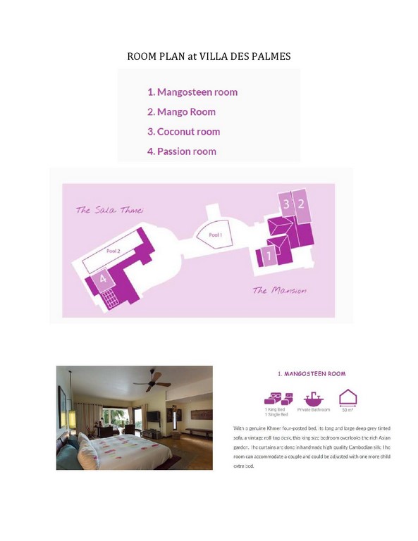 This amazing villa has been designed and built by a well-established French architect. Contemporary, spacious, functional, design, the villa has been conceived to offer comfort and the best facilities for a luxury villa stay. Decorated with style, surrounded by luxuriant garden (6000m2) with two private swimming pools (one is 20 meter long), this property is located in Kep, 2 hours 30 minutes from Phnom penh. https://www.facebook.com/villadespalmes/videos/179933162892875/UzpfSTE1MjM5NzQ2OTEyMTE5MDM6MjIwMDk2MDc3MDE3OTk1NQ/ Tasteful furnishings, perfectly maintained with a surprising serenity. For more details : https://www.villadespalmes.org Air con and flat screens tv/dvd in all rooms. Villa staffing & service: two private cooks for intimated breakfast and dinner on the terrace, one waiter and one daily maid. For the accommodation, we have four bedrooms (3 suits with king bed and 1 bedroom with 2 single beds), we can add queen bed in two suits, 2 single bed, the villa suits for 15 persons. The villa is Located: – 200 m from the Crab Market with many local seafood restaurants and the sea, – 500 m from the beach, – 600 m from the sailing club, with sea kayaking, catamaran, windsurfing. The wole property is at your disposal Rates For 8 persons PER night, included breakfast July 2025 to December 2026 , $ 500 USD Extra 1 person usd 35 per night Spécial Rates, included breakfast ++ we recommend you to book in advance ++ 2025 Pchum Ben Festival : September 19 to 27, 2025, $700 USD , with minimum of 2 nights stay Water Festival :October 31st to November 8, 2025, $700 USD , with minimum of 2 nights stay Christmas and New Year : December 19, 2025 to January 5th 2026, $800USD, with a minimum of 3 nights stay 2026 Chinese New Year : February 13 to 23, 2026, $800 USD , with a minimum of 2 nights stay Khmer New Year : April 10 to 20, 2026, $700 USD , with a minimum 2 nights stay Possibility of extra beds at $35 per person per night. TO CONFIRM BOOKING: A deposit for 1 night will confirm the booking The payment can be done by Wing, bank transfer to ABA or oversea Bank For more details : Please contact by email Geraldine: English or French gs ******** @ *** oo.com or Mobile / WhatsApp / Telegram + 855 12 214 798