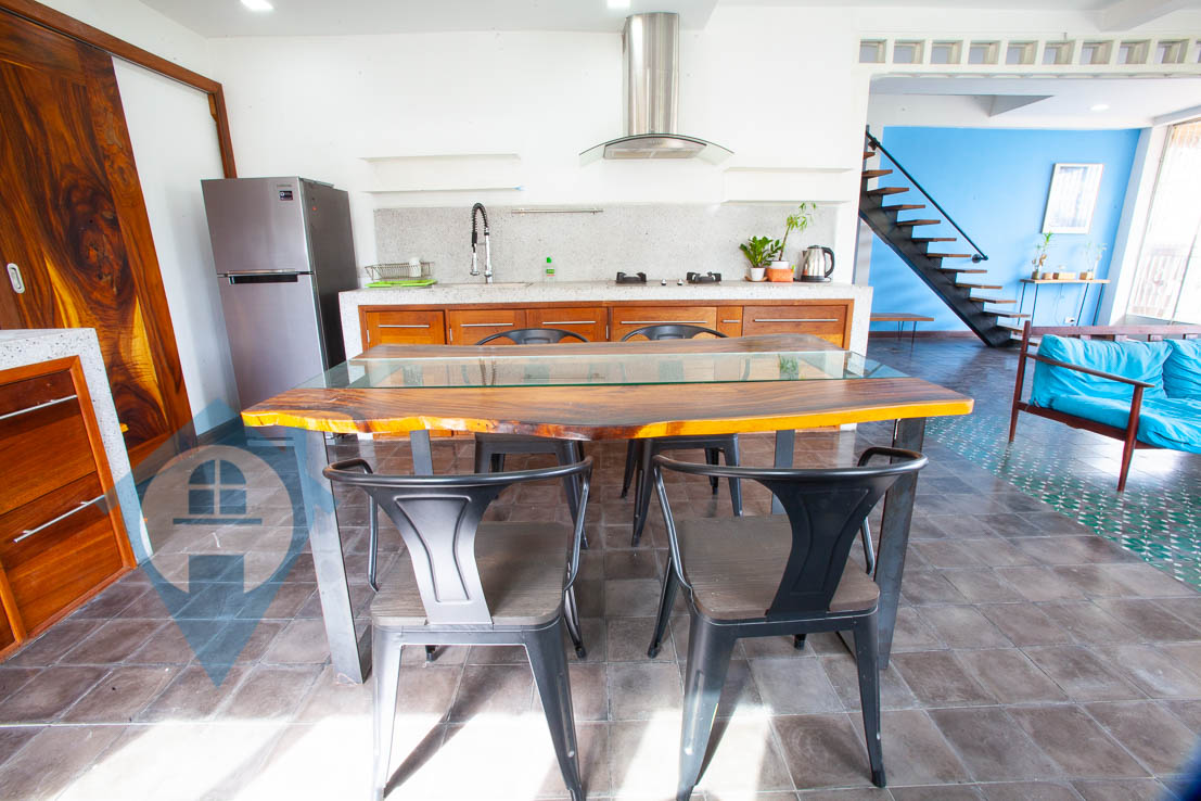 This two bedroom apartment for rent is located on street 178 in the central Daun Penh area of the capital Phnom Penh. The apartment is bright and airy with lots of natural light and is tastefully decorated and furnished. The apartment is 180 sqm in size and the terrace is 40 sqm making it ideal for outside living. There is parking close by and the property is within walking distance of many local amenities. This apartment is on the 3rd floor. Please quote property code : PRE000978