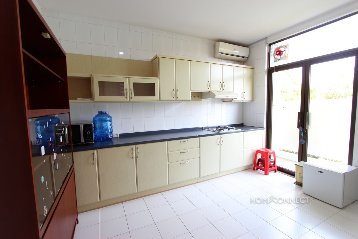 This large three bedroom apartment is within minutes of the Independence Monument in the Heart of Phnom Penh. The apartment is has lots of natural light making it bright and airy and benefits a good sized balcony over looking the low level complex. There is a large pool, jacuzzi, gym and ample parking for cars and moto's plus a large private roof terrace with an open air bath tub. The apartment is fully serviced and has an onsite management team to cater for your needs and make your stay a happy one. Property Code : PC000249