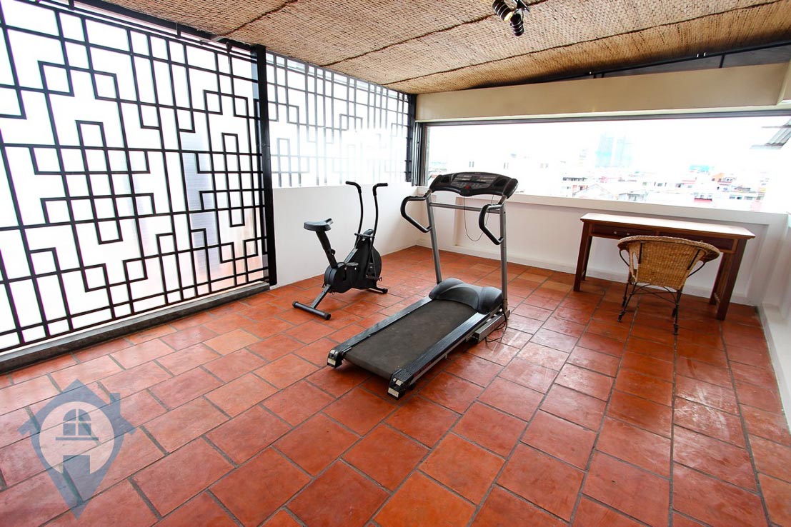 This beautiful large terrace three bedroom apartment for rent near the famous riverside area in Phnom Penh offers stylish living in a desirable location. The property has a large open plan kitchen / dining area leading to a large private terrace complete with Jacuzzi. The bedrooms and bathroom are finished in a western style. There is a second floor which is currently been used as a gym plus a second private roof terrace. From the living room you have uninterrupted views over the Phnom Penh skyscape. Please Quote Property Code : PRE000783