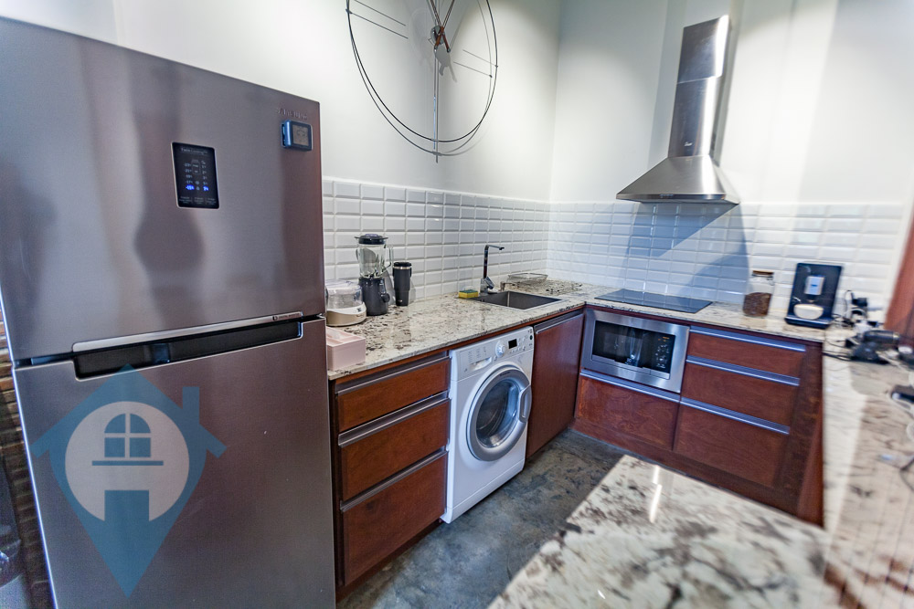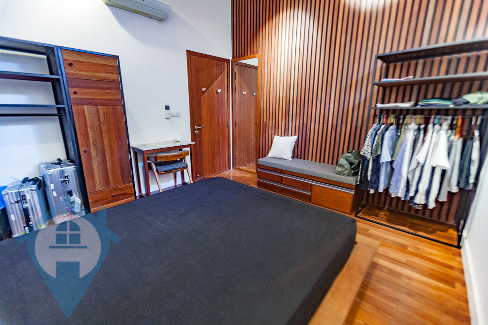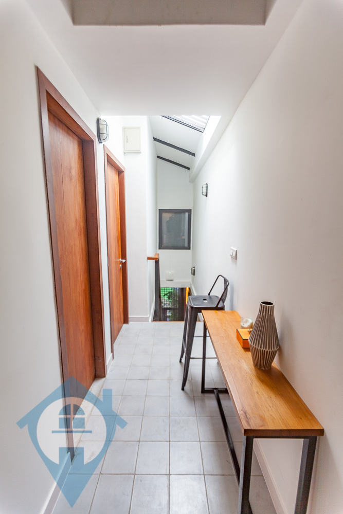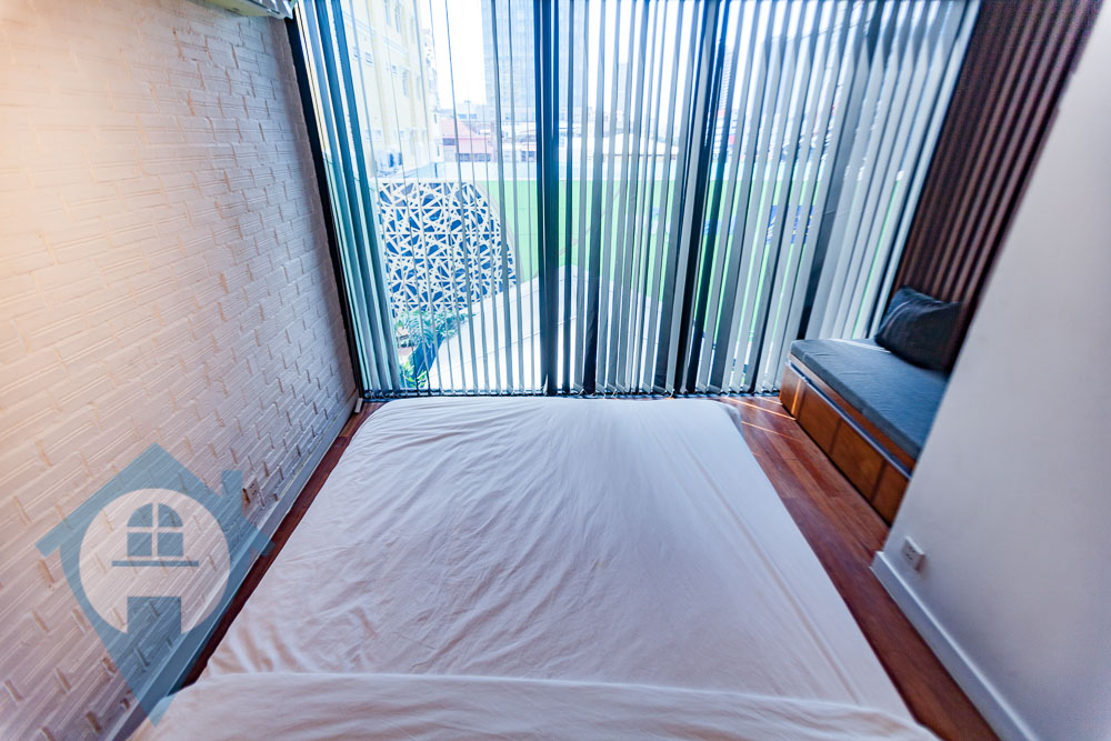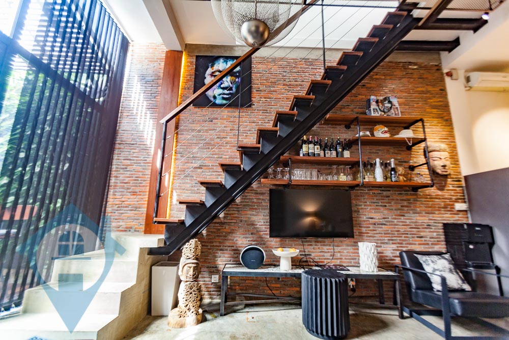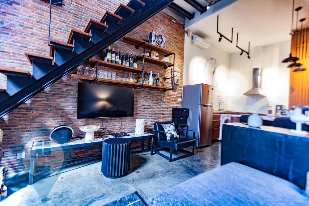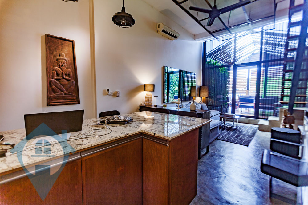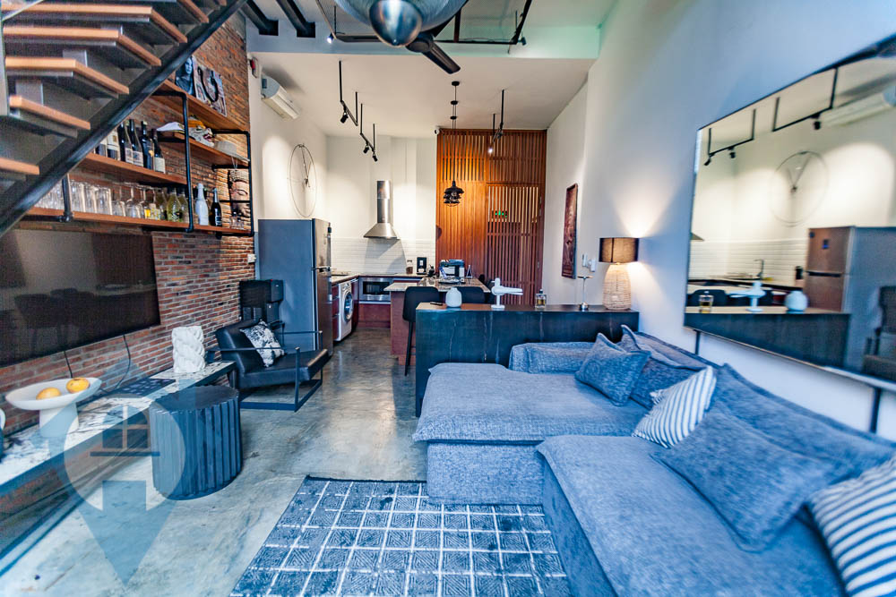 Discover modern living in this beautifully renovated duplex, conveniently located near the iconic Wat Phnom. This top-floor residence offers a stylish and practical home, perfect for a new couple or young professionals. The main hall features a contemporary, moody-minimalist design. It includes a spacious living area with a wide sofa, a compact and elegant kitchen with an integrated dining nook, and a lovely balcony. The balcony's wooden flooring and abundant greenery create a refreshing outdoor space. For your peace of mind, the property is self-sufficient, equipped with rooftop solar panels and a video surveillance system in the common area. Upstairs, you will find two comfortable bedrooms. Each room comes with a queen-sized bed, a dresser, and air conditioning, ensuring a smooth and easy move-in. This fully furnished duplex is an excellent investment opportunity for both new and seasoned real estate buyers. Property Highlights: Duplex Layout 2 Bedrooms, 2 Bathrooms Size: 106 Sqm. Fully Furnished Cozy Living Area Peninsula Kitchen with Integrated Dining Nook Balcony Floor: 3rd (Top Floor) Nearby Locations: 1 minute to Preah Ang Duong Hospital & Central Market 3 minutes to Eden Garden Mall 5 minutes to the University of Puthisastra & Orussey Market 8 minutes to the Royal Palace & TK Avenue Mall Please Quote Property Code : PRE000940