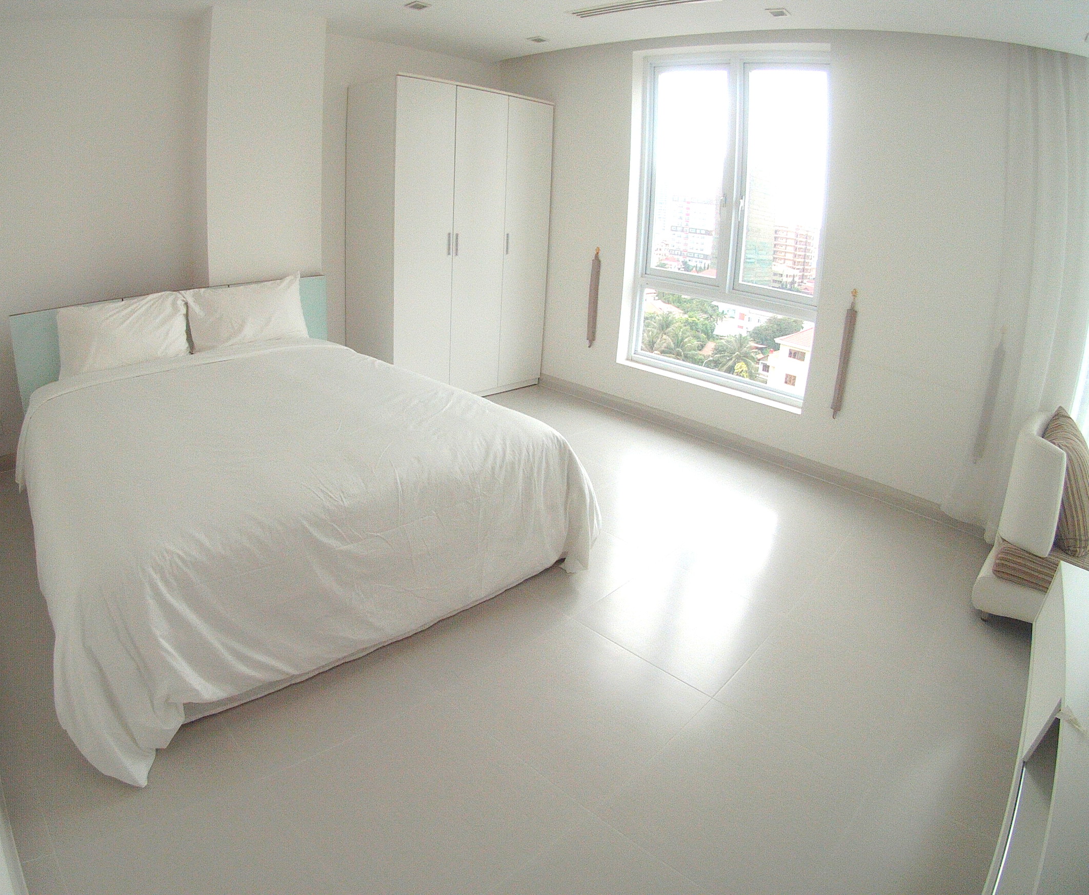 This modern apartment, available now, with all modern facilities, great master bedroom with a desk space, large cabinet and private bathroom (shower and bathtub), a large living and dining area, a pleasant balcony, an equipped kitchen, another bedroom with private bathroom and 2 flat screen tv. Rent include: taxes, 24 hours security, tv cable, wifi, water, car park, cleaning and laundry 3 times a week Rental:Minimum 1 year Please mention N°321 Contact by email : English or French Contact by phone : English or French or khmer