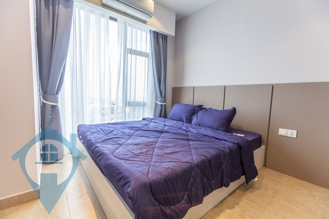 This modern two bedroom apartment for rent is located in the Toul Kork district in the capital Phnom Penh. The unit comes with two bedrooms and two bathrooms and a separate wc. The building benefits from a rooftop swimming pool, gym, secure parking for cars and motos, 24 hour security and an onsite management team. The apartment comes fully furnished and has a private balcony with views over the cityscape and is on the 24th floor. Please quote property code : PRE001651