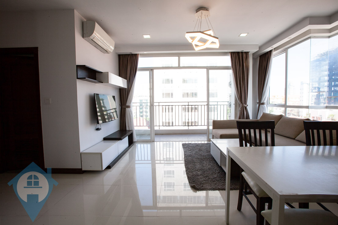 This modern bright 2 bedroom apartment is located within walking distance of the iconic Independence monument in the heart of the capital Phnom Penh. The apartment comes with two bedrooms, two bathrooms, private balcony and lots of natural light. The unit is fully services and the building has 23 hour security, secure parking, rooftop swimming pool and gym. A main benefit of this apartment is the location, within walking distance of many local amenities. Please quote property code : PRE001270