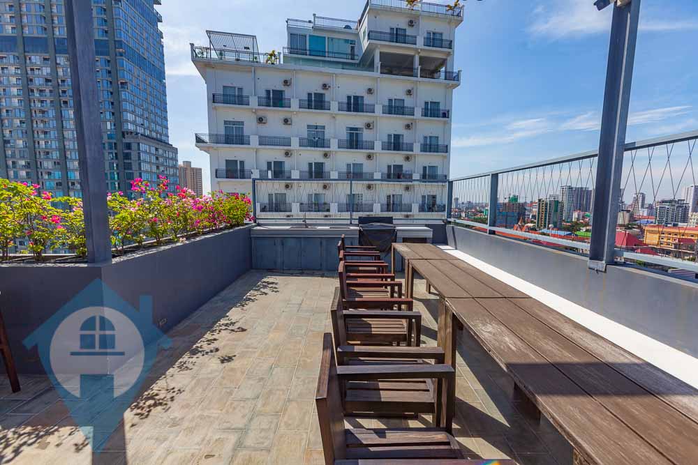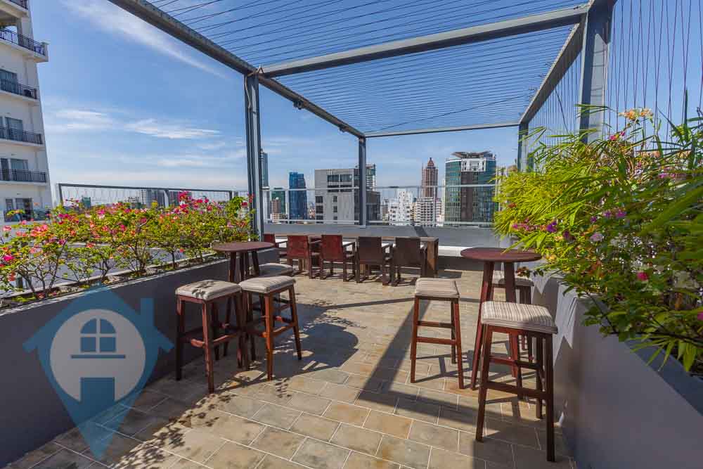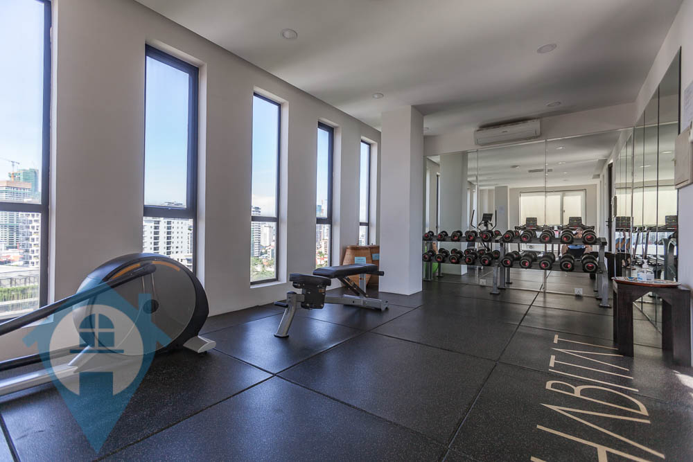 This modern duplex apartment is located in the central district of Tonle Bassac in the heart of Phnom Penh. The property is set over two levels and the 7th and 8th floor, with the lower level featuring a large open plan living area with an attached modern kitchen. There are three bedrooms and three bathrooms plus a storage room. All fixtures and furnishings are of a modern style and there is a rooftop pool accessed via a private staircase, gym and entertainment area. This is luxury living at it’s best. Please quote property code : PRE002167