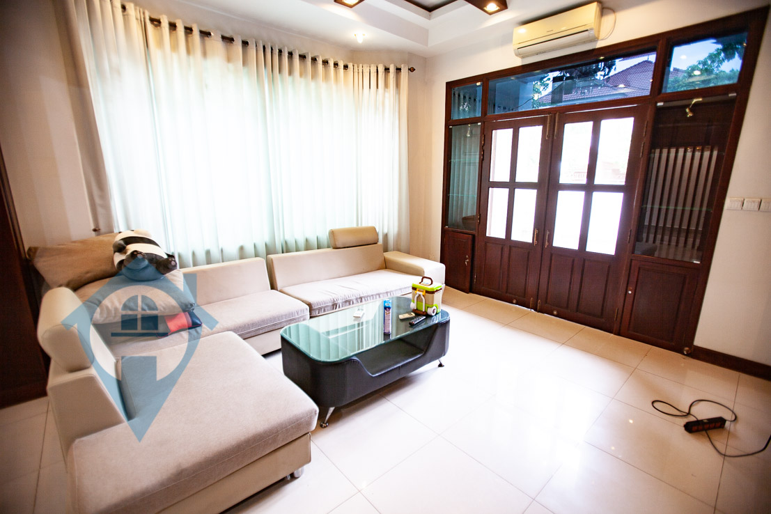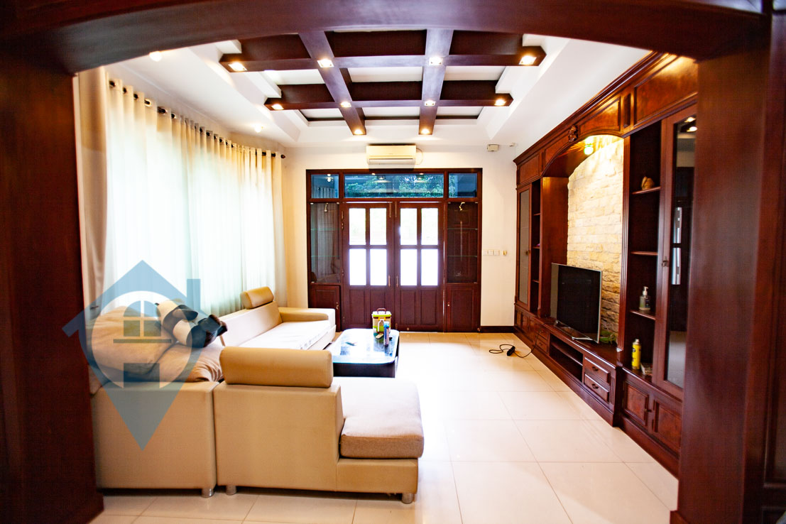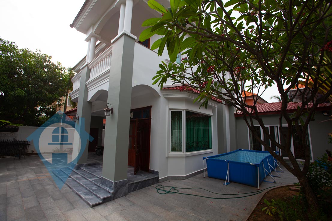 This modern four bedroom villa for rent is located beside the landmark Aeon mall in Tonle Bassac in central Phnom Penh. The property comes with four large bedrooms and five bathrooms plus a maids room. The villa comes with a modern fitted kitchen leading into an open plan living / dining area. The property has a spacious private courtyard with secure parking for several cars. The property was photographed days after the previous tenants left, the owner will renovate and improve the villa before new tenants move in. This gated community benefits from a swimming pool, gym, spa, supermarket, 24 security and is popular with expats. Please quote property code : PRE001489