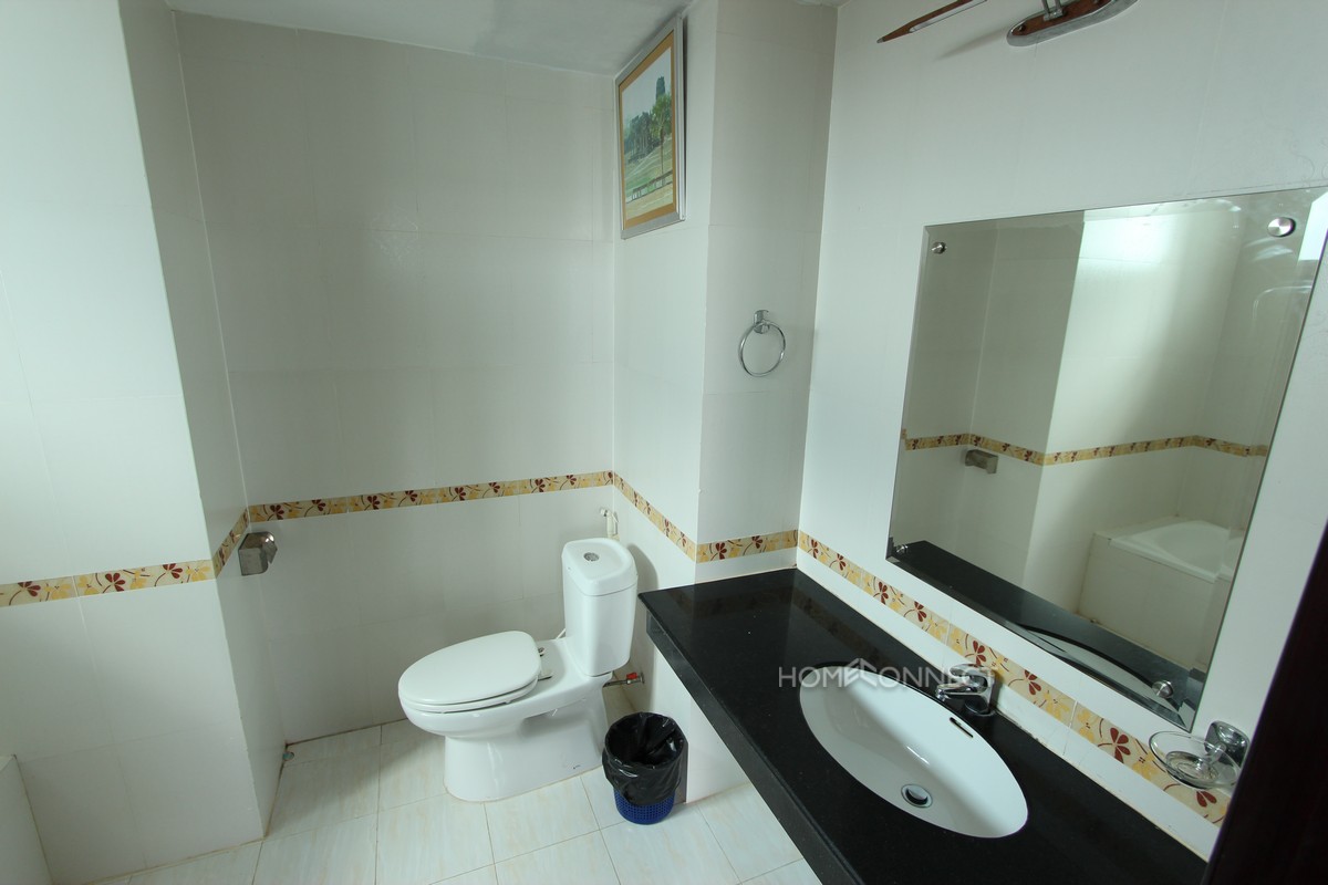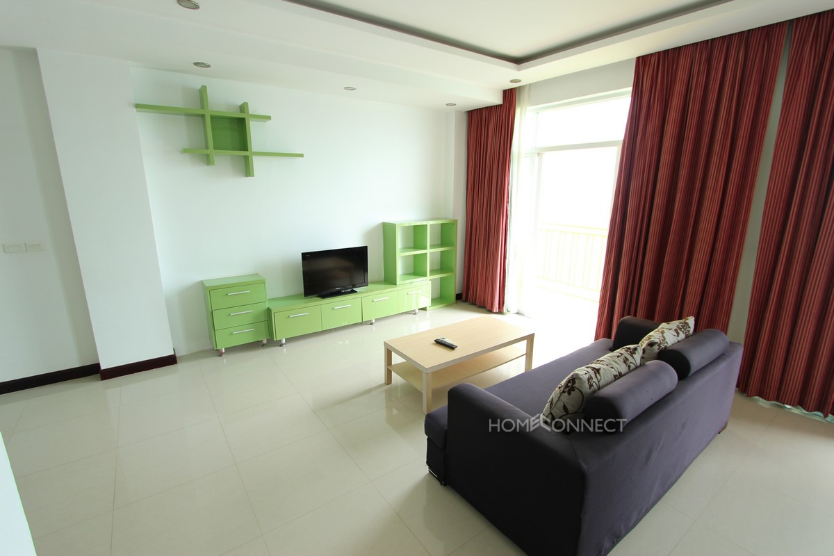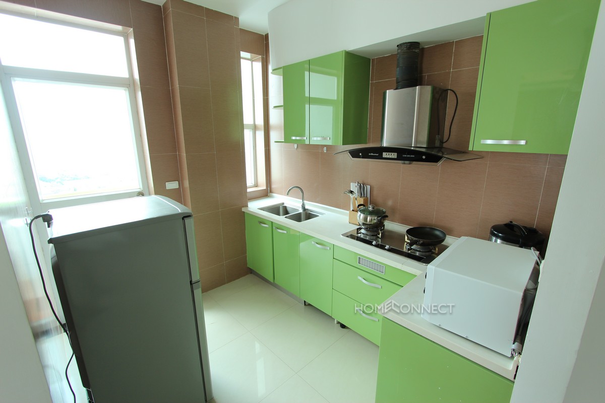 This studio apartment is located in a recently constructed condominium development in the are of Chroy Chongva, to the northeast of central Phnom Penh. The apartment comes fully furnished with all modern conveniences and is fully serviced with a 24-hour reception area. The apartment features a large open plan bedroom/living area with a contemporary kitchen to the side. The living area opens out to a large balcony that affords amazing views of the Mekong River. Property Code : PC000062