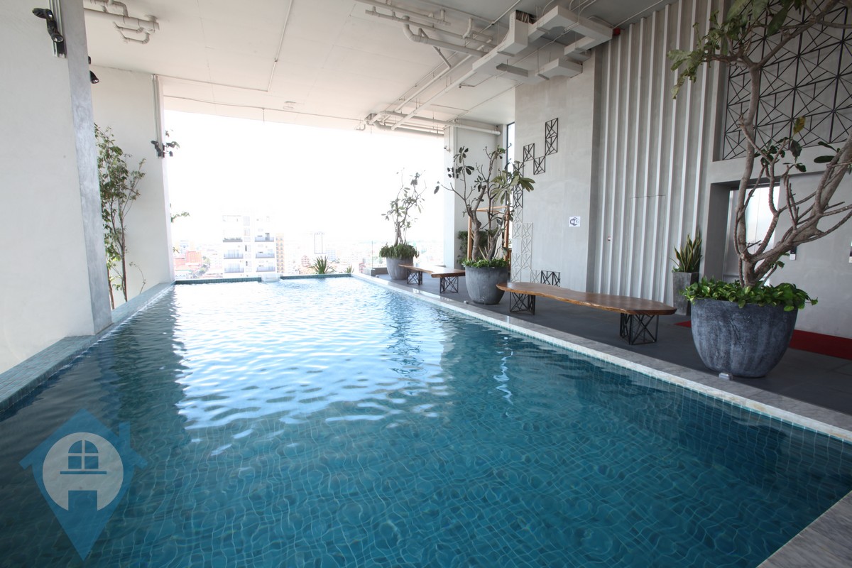 This modern office space for rent is located close to landmark Russian market in the south of the capital Phnom Penh. The building comes with secure parking, 24 hour security, cafe, swimming pool and gym. The office space comes with aircon and carpet. Please quote property code : PRE001055