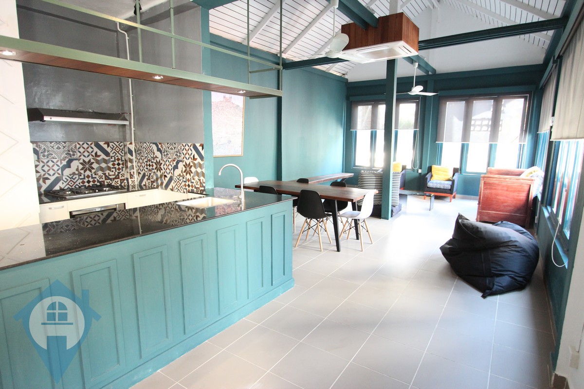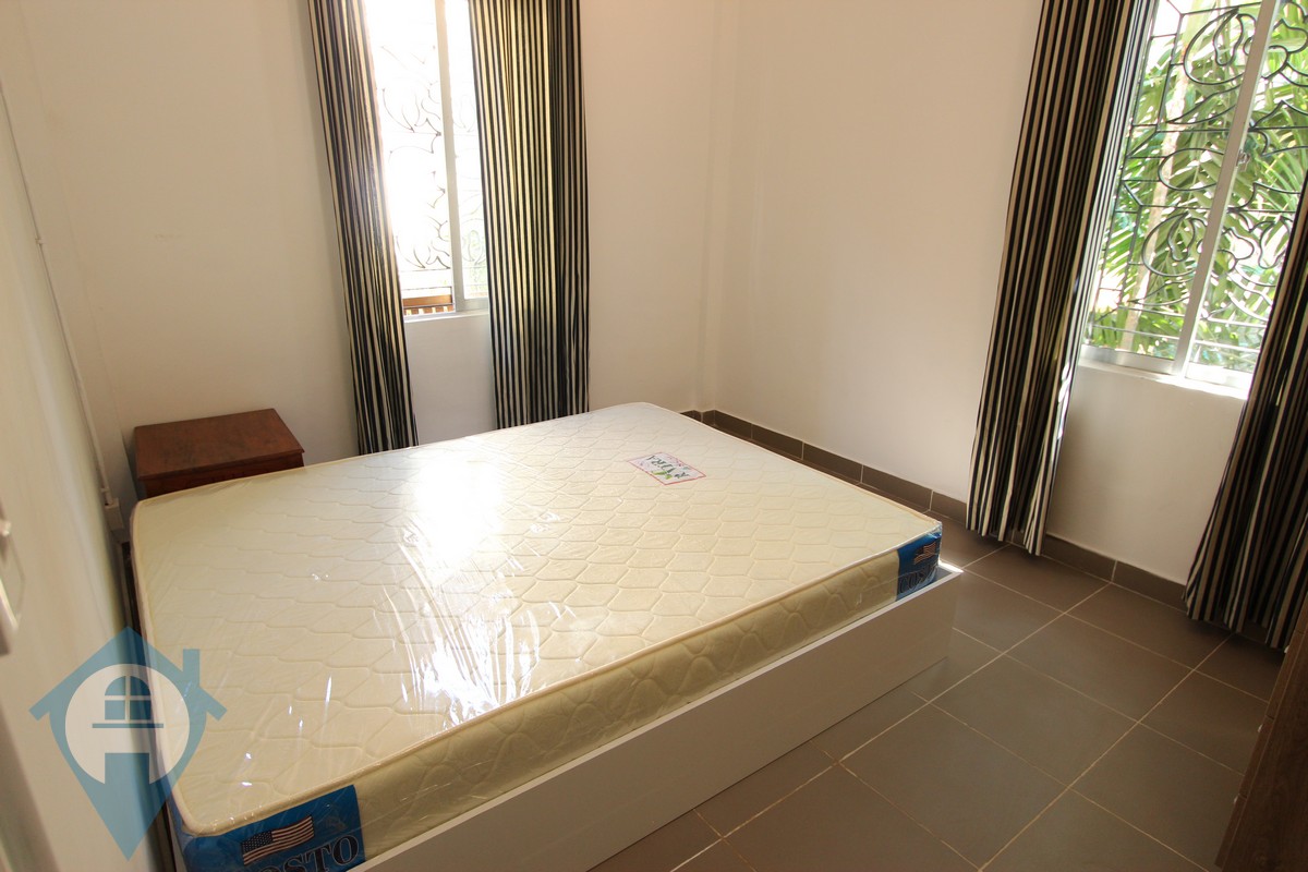 This newly renovated one bedroom apartment is finished in a modern western style and is within walking distance of the landmark Independence monument in central Phnom Penh. The property comes with one good sized bedroom and two bathrooms. The living room is open plan leading to a modern fitted kitchen and a private terrace area. There is secure parking for motos. The property has lots of windows meaning the property is both bright and airy. Please quote property code : PRE000936