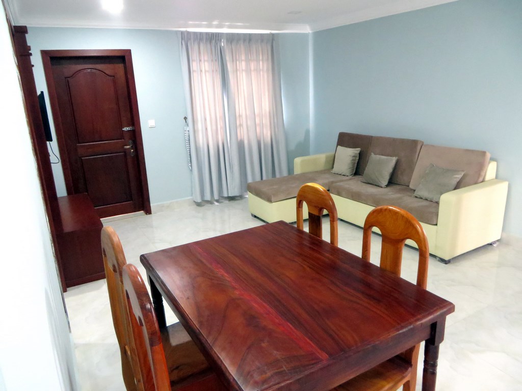 A new service apartment, 2 bedroom apartment furnished with a nice swimming pool and fitness, rent include cable tv, wifi, car park, security 24 hours a day, cleaning one a week Electricity : $0.30 per kw Water : $0.25 per cubic meter Please mention code 332 Contact by email : English or French Contact by phone : English or French or khmer