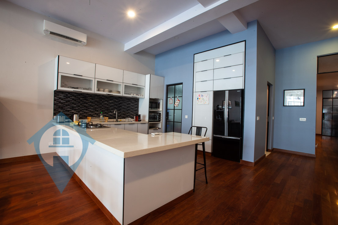 This newly renovated two bedroom apartment for rent in located in Daun Penh in the capital Phnom Penh. The apartment comes with two en-suite bedrooms and a guest bathroom. Its located on the second floor and has a private terrace. The entrance is clean and secure and is only shared with 2 other apartments. The quality and finish is of the highest standard and comes fully furnished. The ceilings are 3.3 meters high, the width of the apartment is double frontage the floors are made of teak wood. Please quote property code : PRE001328