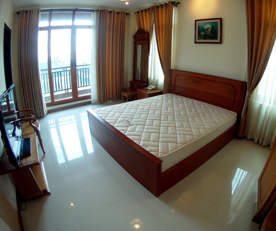 This serviced apartment offers a very nice swimming pool, with all facilities:a spacious 2 bedroom apartment with large bay window, very light living room area and 2 large bathroom Fully furnished : gas burner, micro wave, fridge and freezer, washing machine sofa, dining table, beds, mattresses, cabinets, A/C The monthly rent included wifi, cable tv, car park, pool, fitness Please mention N° 282 Contact by email : English or French Contact by phone : English or French or khmer