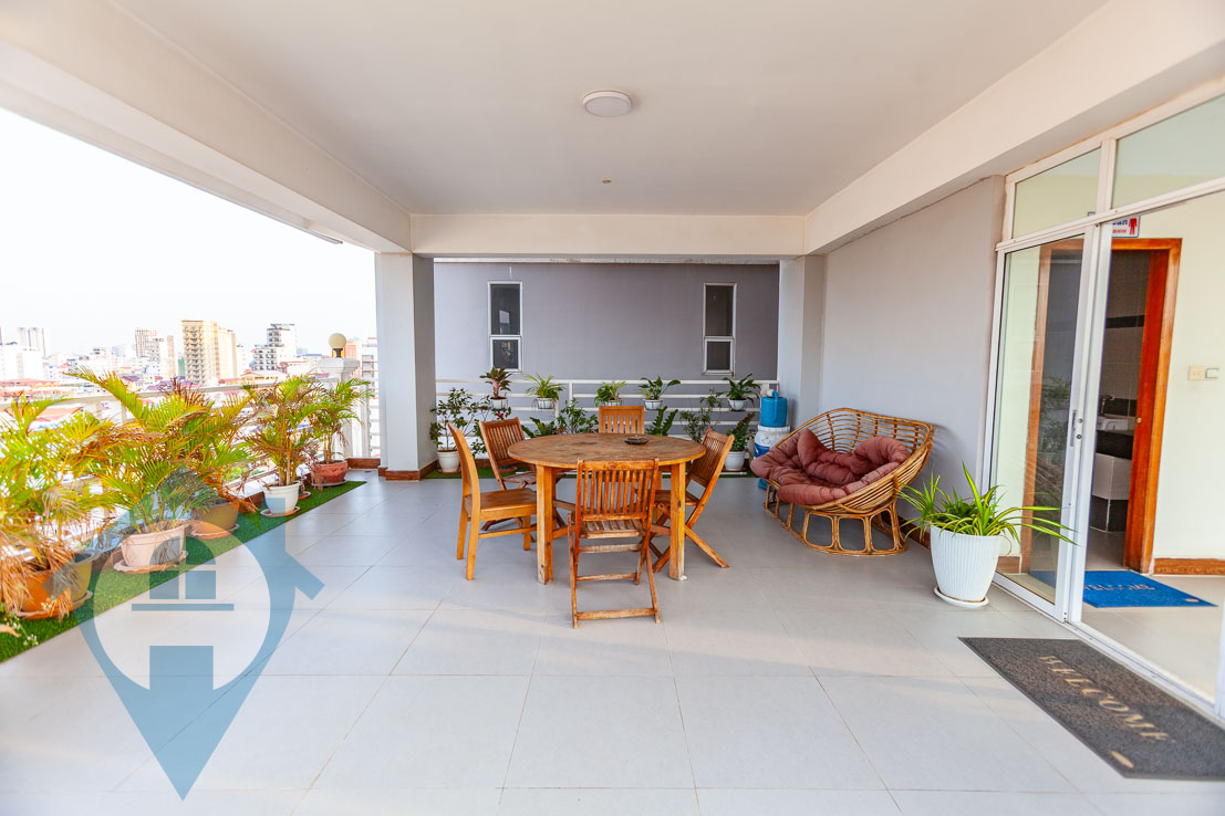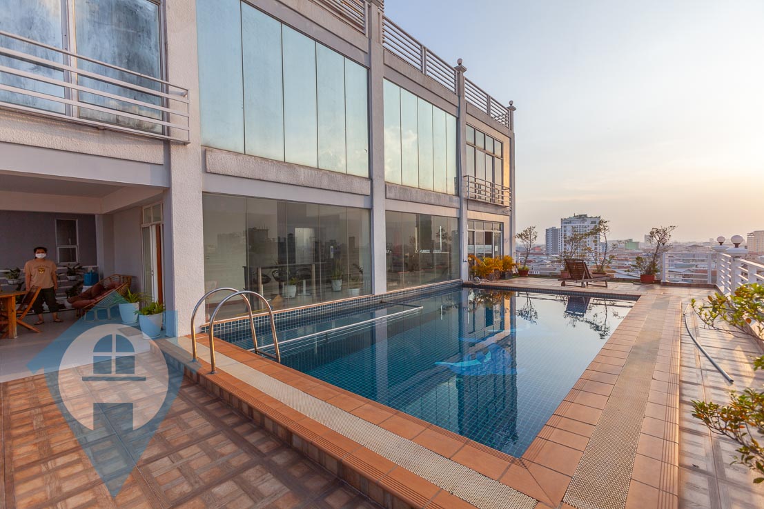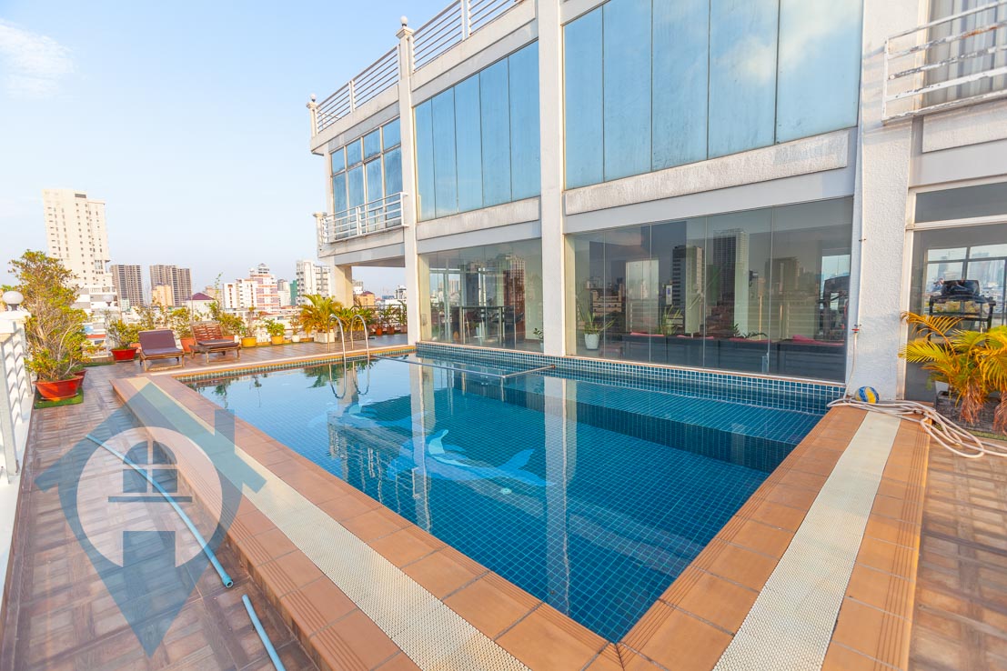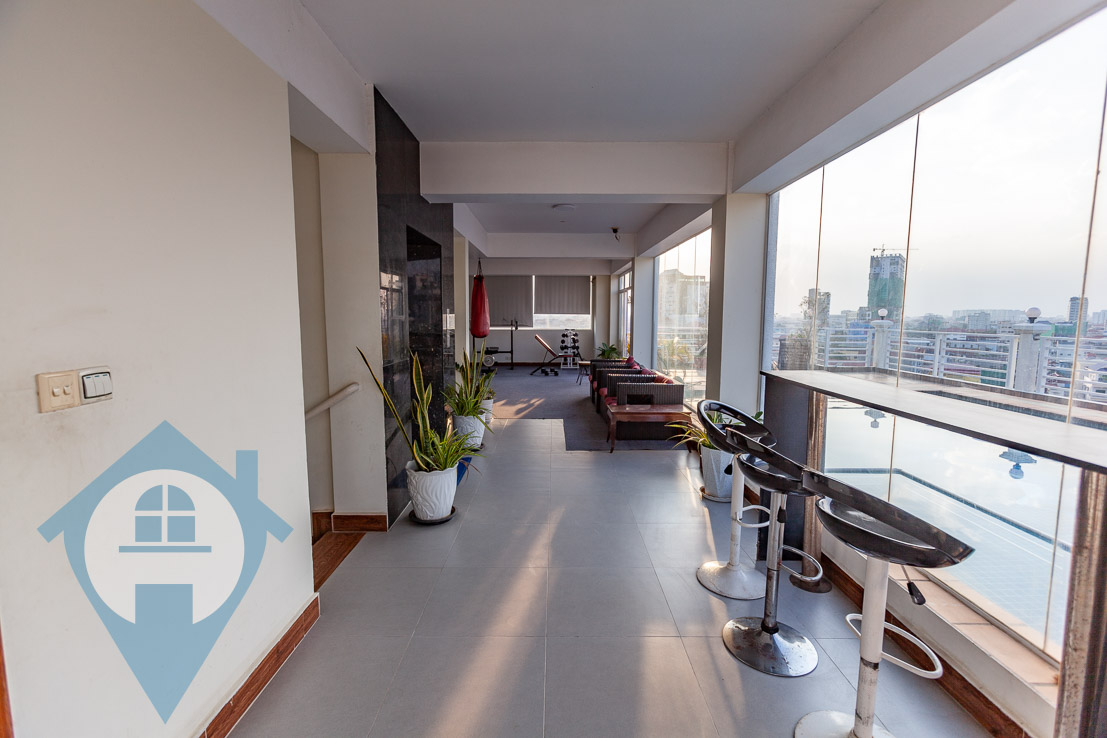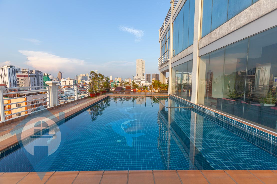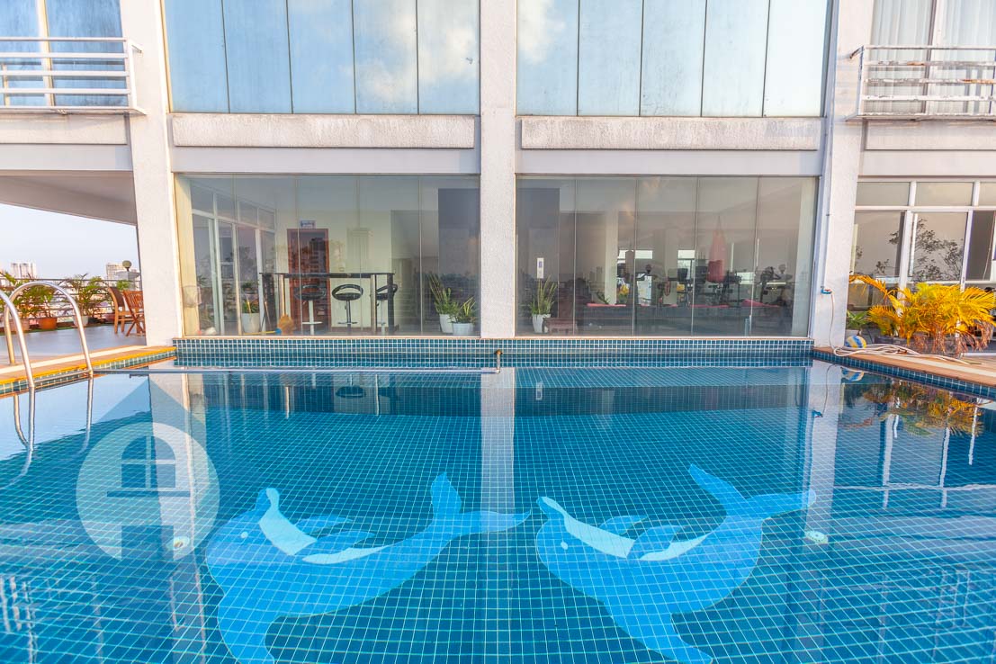 This large two bedroom apartment is located close to the Russian Market in the district of Toul Tom Poung. It features a large open plan living area with attached balcony and two bedrooms off to the side. The property comes with a modern kitchen and contemporary fittings and fixtures throughout. There is a pool and small gymnasium on the rooftop for tenants to use at their leisure. The apartment comes serviced and secure parking is available on the ground floor. Property Code : PC000279
