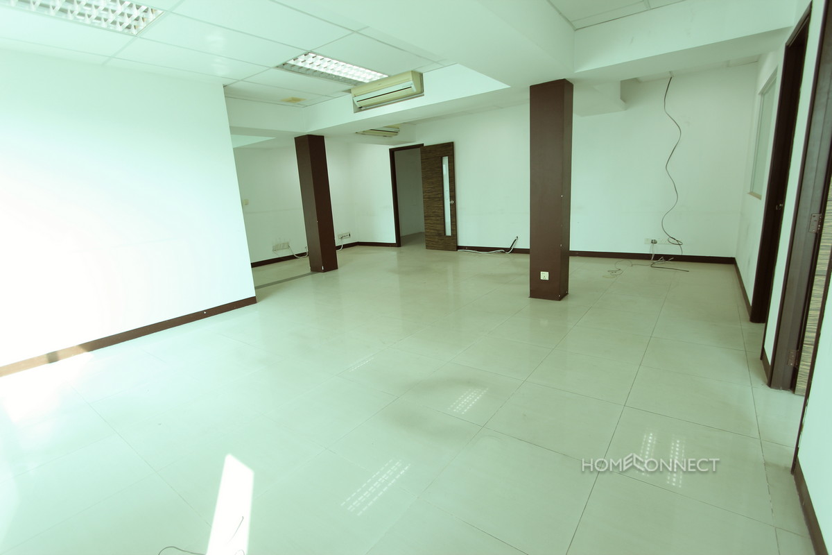 This property is located in a purpose build office building that is located on Mao Tse Toung, not far from the Russian Market and the Olympic Stadium. It features a large open plan space of a total of 271 sqm with a common area consisting of toilet ammenities, stairwell and 2 elevators. The property has undercover parking in addition to roadside parking on one of Phnom Penh’s major boulevards. Property Code : PC000195