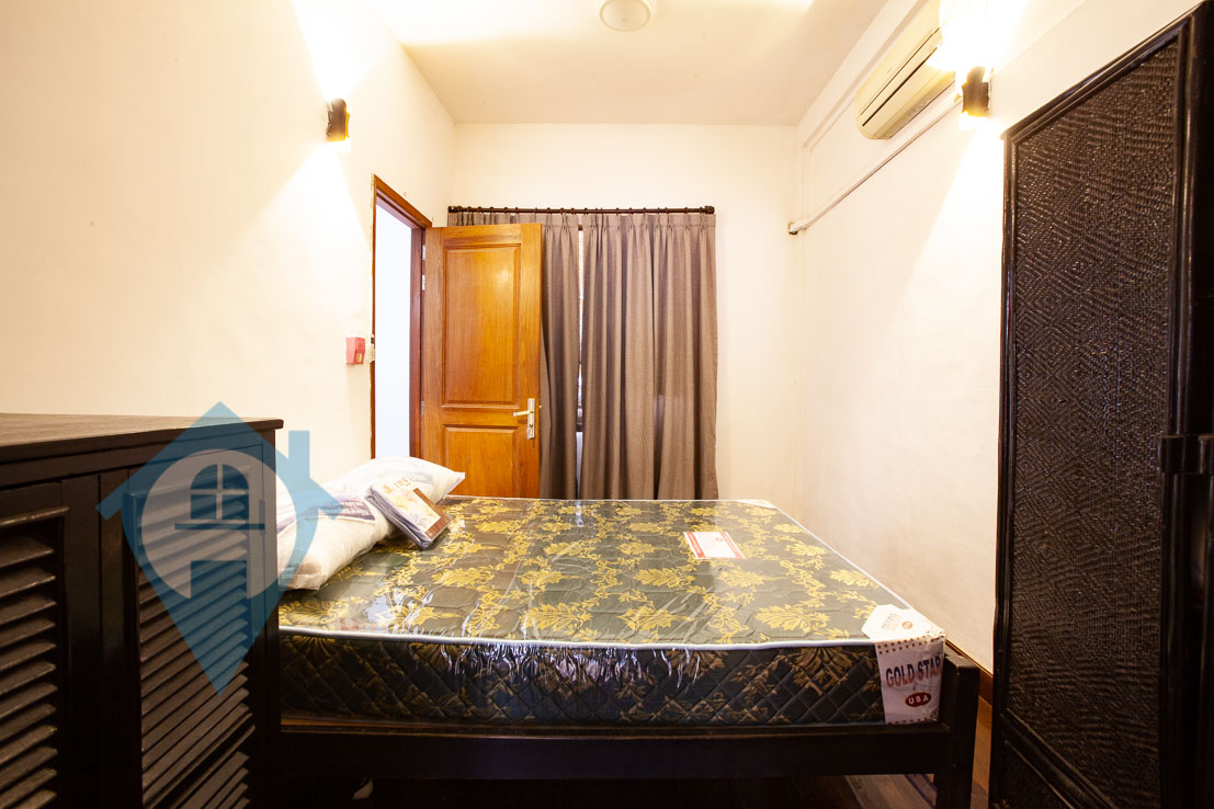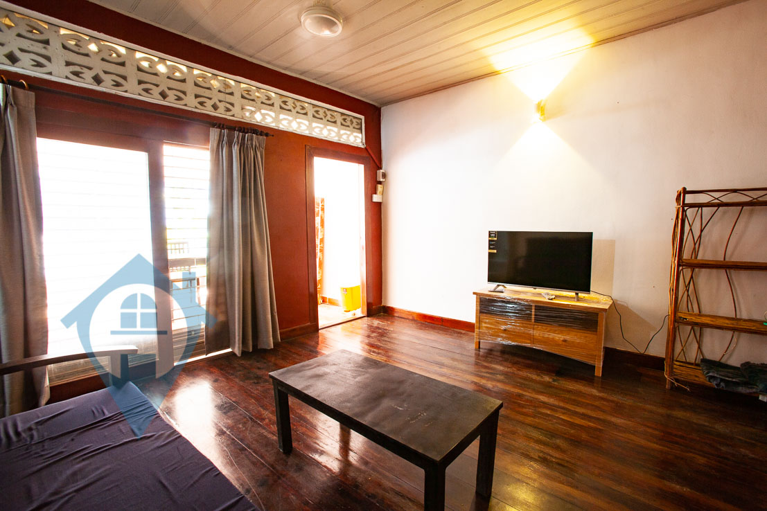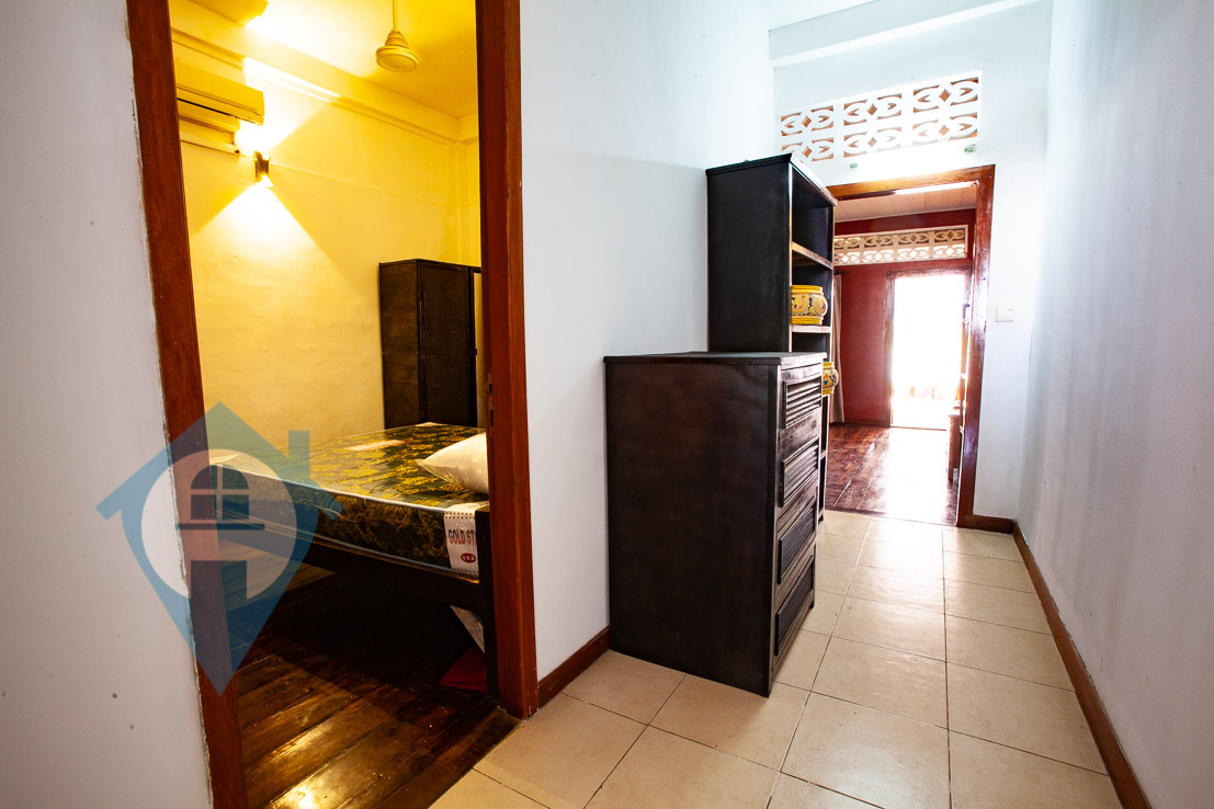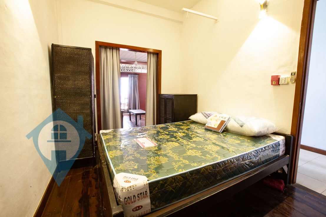 This one bedroom apartment for rent is located near Wat Ounalom in the riverside area of Daun Penh in Phnom Penh. The apartment comes with one bedroom and one bathroom and is fully furnished. The apartment is on the 4th floor and has a large private balcony on this floor and a private rooftop terrace on the 5th. The apartment is accessed via a shared stairway via an alleyway. Communal parking is available for cars and motos close by. Please quote property code : PRE001445