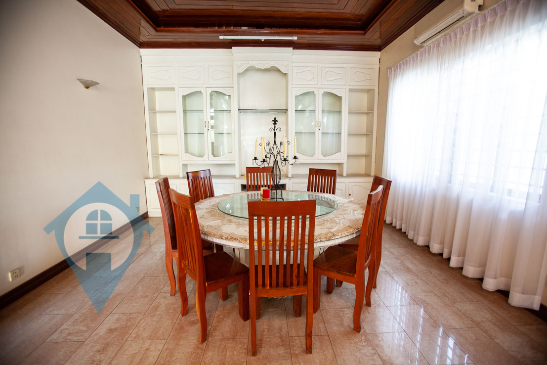 This five bedroom villa for rent is located in the quiet residential district of Toul Kork in the west of the capital Pnnom Penh. The villa comes with five large bedrooms and seven bathroom as well as extra staff quarters. The villa benefits from several terraces overlooking a large mature garden complete with a spacious swimming pool. This property is close by to various supermarkets and local amenities. Please quote property code : PRE001474