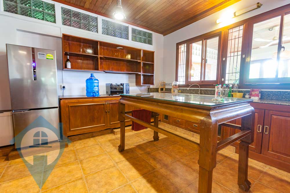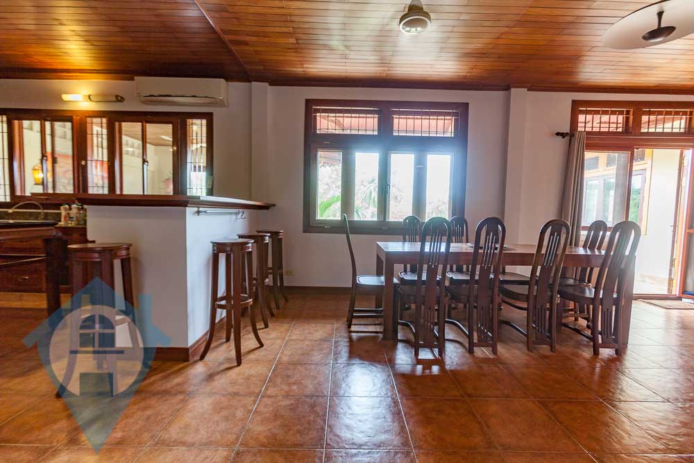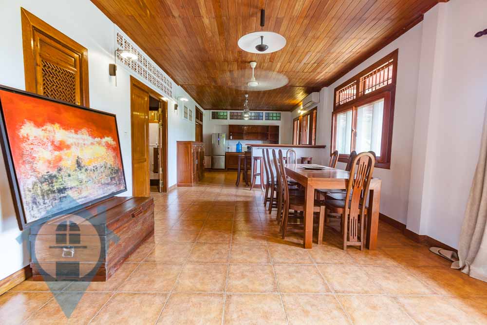This four bedroom French colonial apartment for rent is located beside the national museum and the Royal Palace in the Daun Penh district of Phnom Penh. The apartment is on the 3rd floor and comes with four bedrooms and three bathrooms. The property comes with a large private terrace with spectacular views over the museum towards the palace. The property can be divided into a main apartment plus guest apartment complete with its own kitchen. The apartment benefits from lots of natural light and can be opened to allow for natural air flow. Parking for cars and motos is available within easy walking distance. Please quote property code : PRE001620