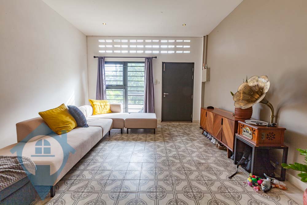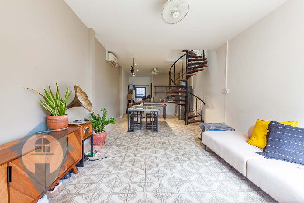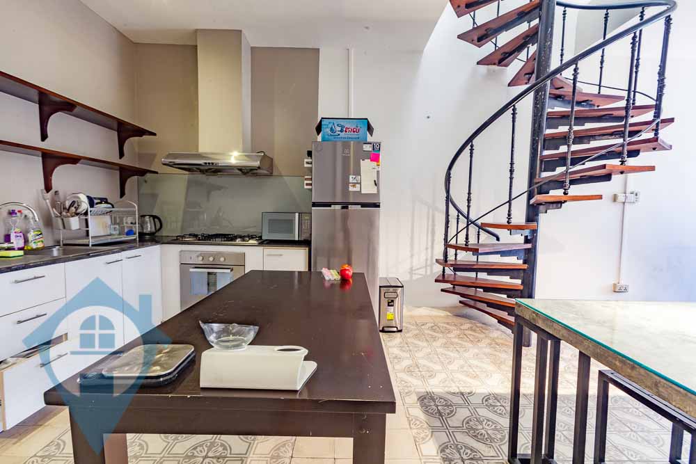 This recently renovated two bedroom three bathroom apartment is now for rent near Phnom Penh’s Riverside area and Royal Palace. The apartment is spread out over two floors with a lovely spiral staircase giving access to the upper level. The lower level has a fully furnished modern kitchen, dining room, living room area, and a spacious balcony. The bedrooms are on the second level and will be fully furnished and include night stands, wardrobe, AC units, and natural lighting. The apartment is situated nearby to the Riverside area which boasts of many international eateries and several supermarkets. Please Quote Property Code : PRE000914