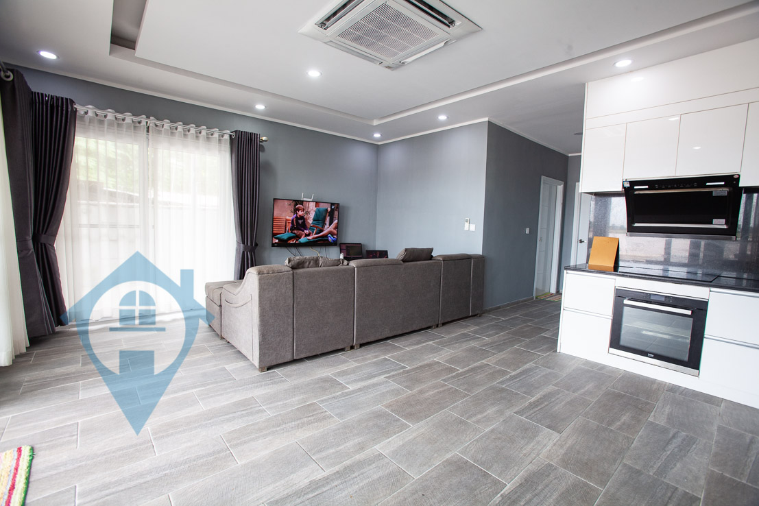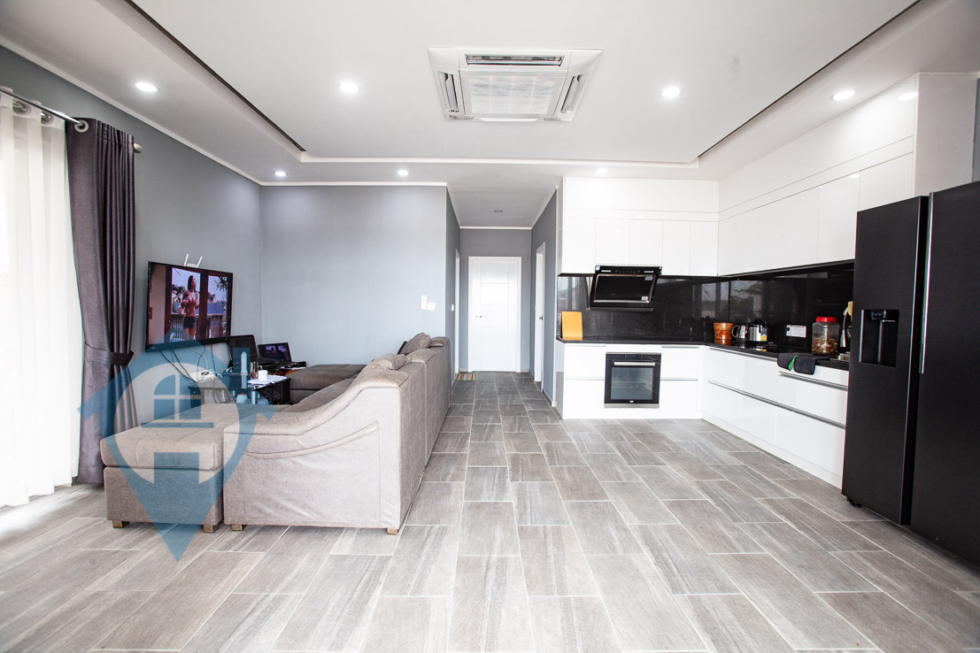 This western style two bedroom villa for sale is located on the banks of the Mekong in the Prek Ampil district near Phnom Penh. The villa comes with a large master bedroom and a small second childrens bedroom. There is a modern fitted kitchen and bright and airy living room. The property comes fully furnished. There is a spacious yard to the front with parking for several cars and two generators. To the front is currently used a small fish farm which could easily be converted into a private swimming pool. There is a private river frontage with views towards Koh Dach and its possible to extend the area into the river to create a larger decking area. This property is currently soft title with the option to convert to hard. The villa is west facing so enjoys perfect sunsets. The plot size is 9.1m x 33m. Please quote property code : PRE001606