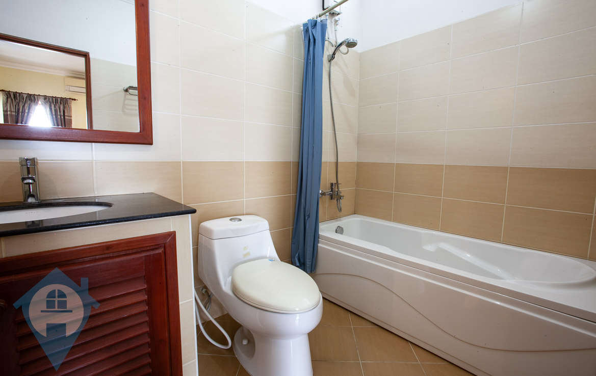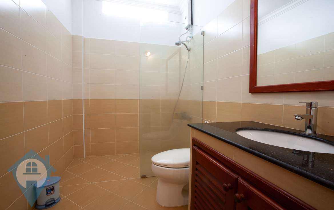 This spacious two bedroom rooftop apartment for rent is located within walking distance from the famous riverside area of Phnom Penh. The apartment comes with a large open plan living area with fitted kitchen, dining area and living room. There are two large double bedrooms and two bathrooms. There is a good sized private balcony plus a rooftop terrace with panoramic views over the Tonle Sap and Mekong rivers. This building comes with secure parking, 24 hour security and an elevator and backup generator. Please quote property code PRE001185