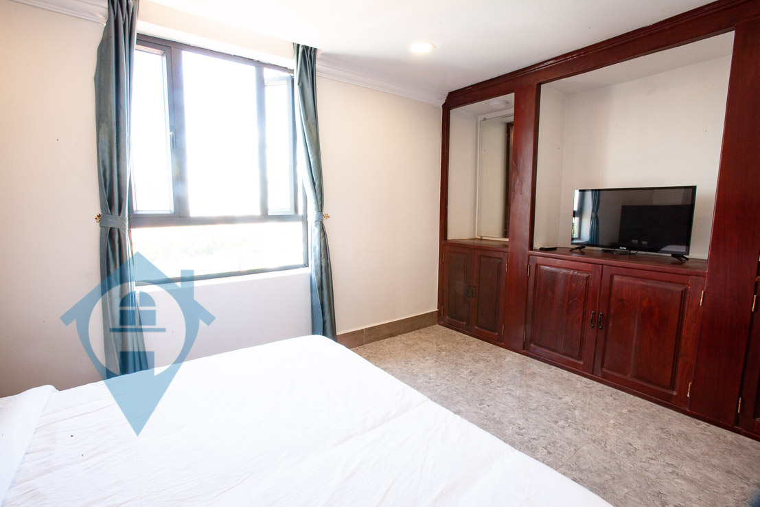 This two bedroom apartment fro rent is located behind the iconic Royal Palace in the capital Phnom Penh. The apartment comes with two bedrooms and two bathrooms. The building has 24 hour security, secure parking, elevator and back up generator. This building benefits from a gym and a rooftop swimming pool with great views towards the Palace and the river. Please quote property code : PRE001348