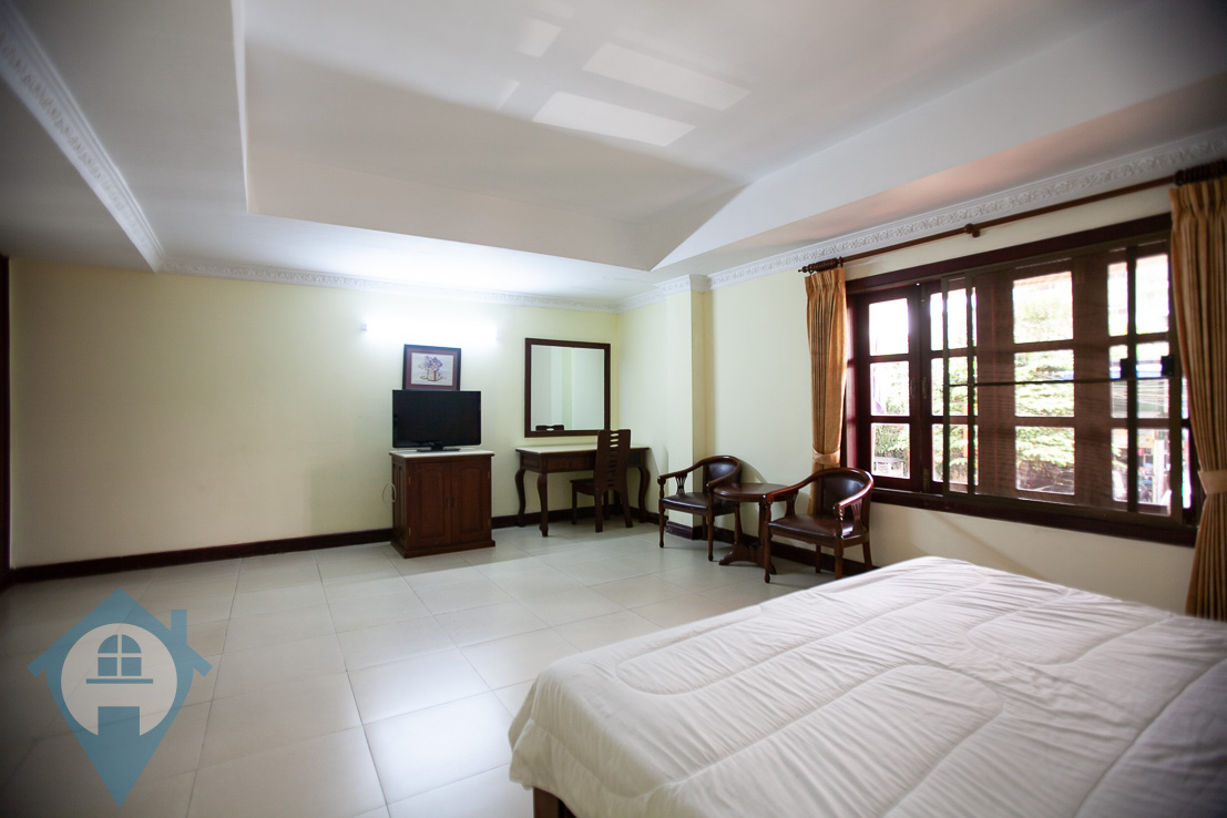 This fully serviced one bedroom apartment for rent is located in the popular northern district of Wat Phnom in Phnom Penh. The apartment comes fully furnished and fully serviced. The apartment is bright and airy with lots of natural light. The building benefits from 24 hour security, secure parking for both cars and motos. Please quote property code : PRE001208