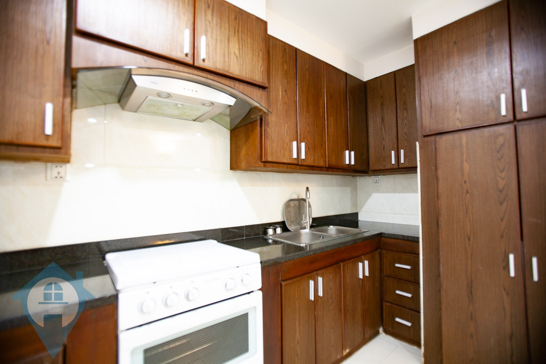 This spacious one bedroom apartment for rent is located in the heart of BKK2 in Phnom Penh. The apartment comes fully serviced and fully furnished. The property is bright and airy and is finished in a western style. The building comes with 24 hour security, secure parking for cars and motos. Close to supermarkets and many local amenities. Please quote property code : PRE001303