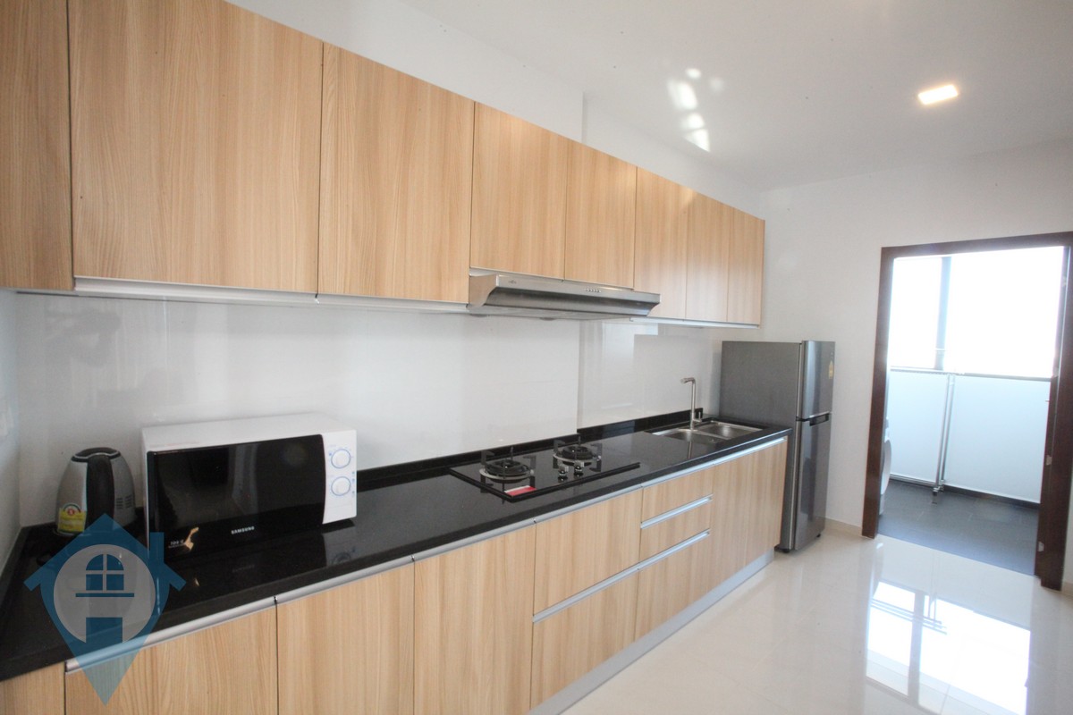 This modern two bedroom apartment for rent is located in the popular district of Toul Kork in the capital Phnom Penh. The unit comes fully furnished and fully serviced. The design allows for lots of natural light giving a bright and airy feel. This buildings comes with a fully equipped gym, rooftop swimming pool, secure parking for both cars and motos and 24 hour security. Located close to many local amenities and popular with expats. Please quote property code : PRE001147