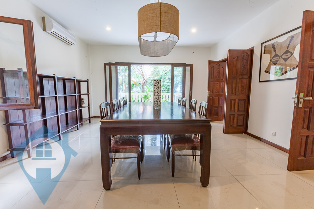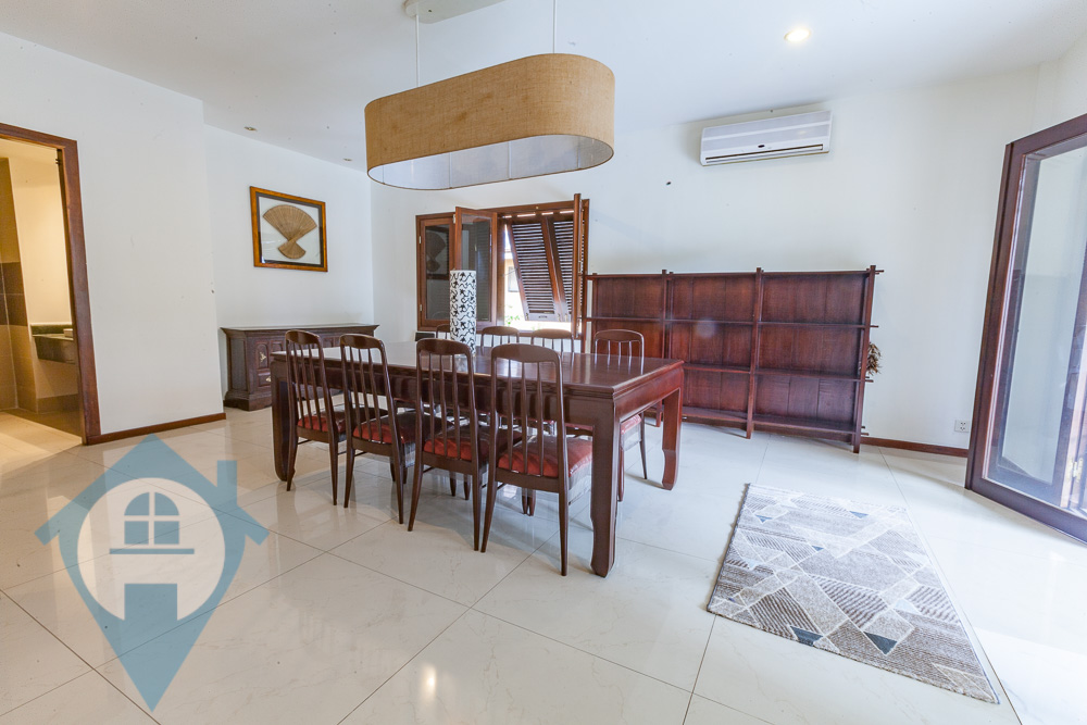 This spacious two bedroom apartment for rent is located in the northern district of Wat Phnom in Phnom Penh. The apartment comes with two bedrooms and two bathrooms and a modern fitted kitchen. The apartment comes fully furnished and has a large private terrace. The dining room can be converted into a third bedroom if required. There is secure parking on site and the area is very popular with expats. The property is very close to Vattanac tower and the French school Lycée français René Descartes de Phnom Penh. Please quote property code : PRE002177