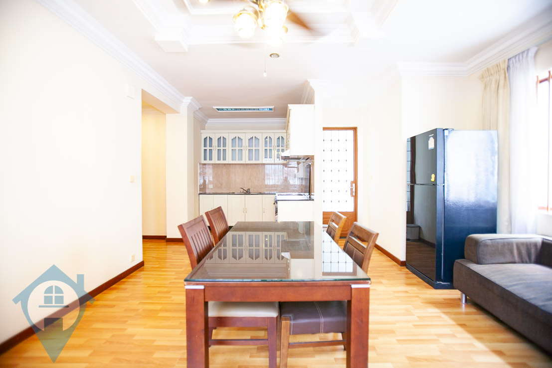 This spacious two bedroom two bathroom apartment is in the heart of the popular BKK1 district in Phnom Penh. The apartment comes with a large living area opening onto a spacious balcony. The kitchen is large with a spacious dining area. The building comes with secure parking, gym, 24 hour security and management team on site. Please quote property code : PRE001254