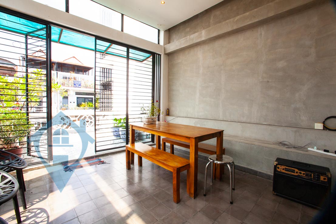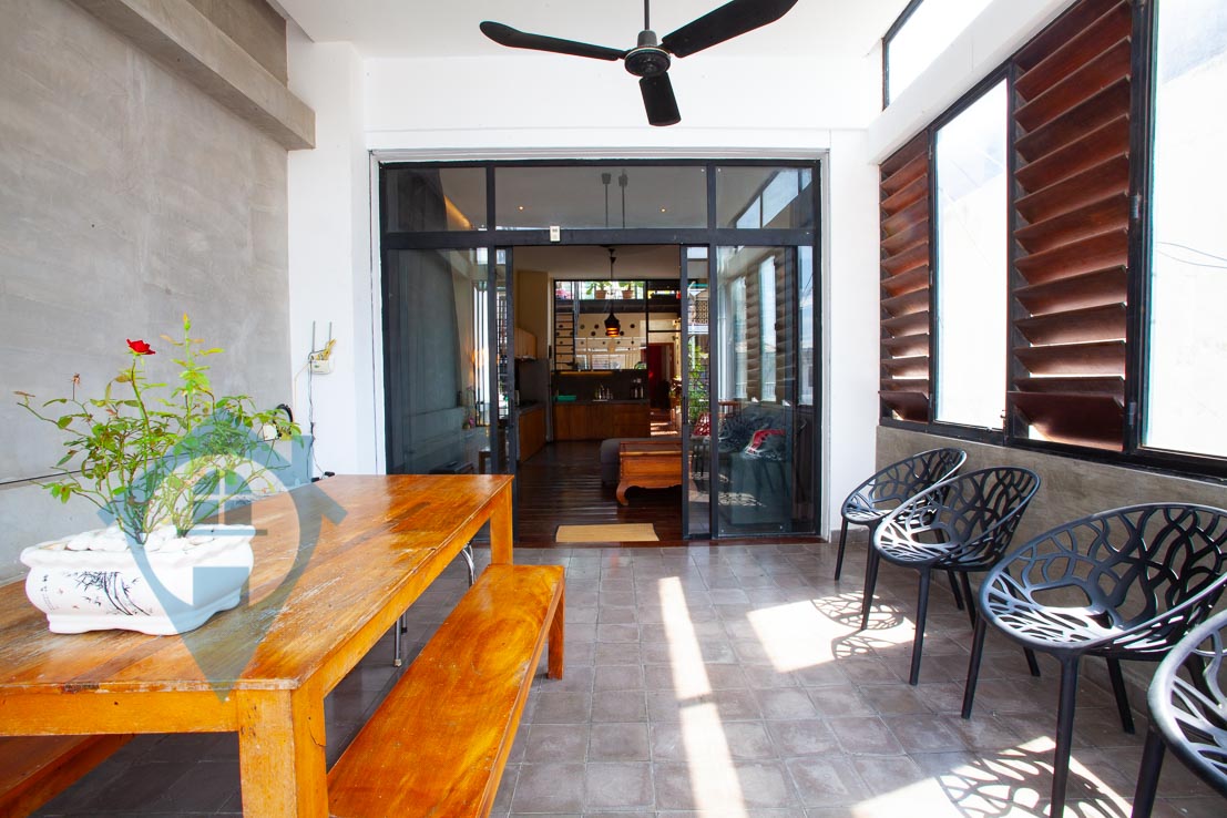 This spacious two bedroom apartment for sale is located within walking distance of the landmark Wat Phnom in Phnom Penh. The apartment consists of two good sized bedrooms and two bathrooms. The property is spread over the 3rd and 4th floors and has two large private terraces. The property is finished in a colonial style and is both bright and airy. Communal parking is available close by. This apartment has a soft title. Please quote property code : PRE001345