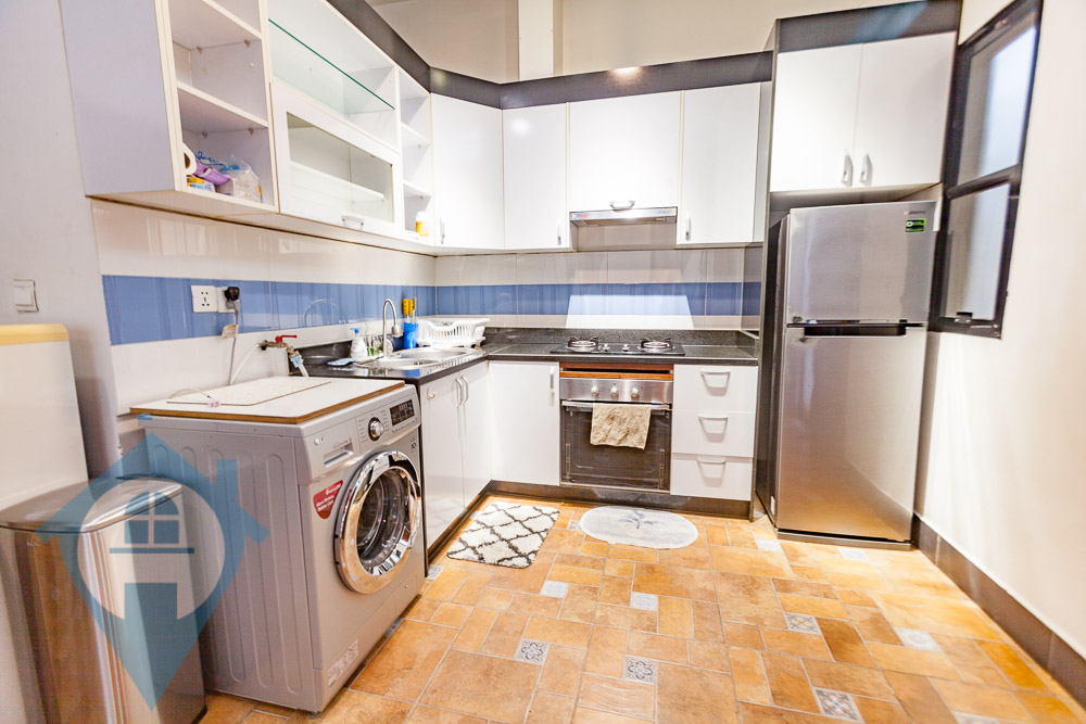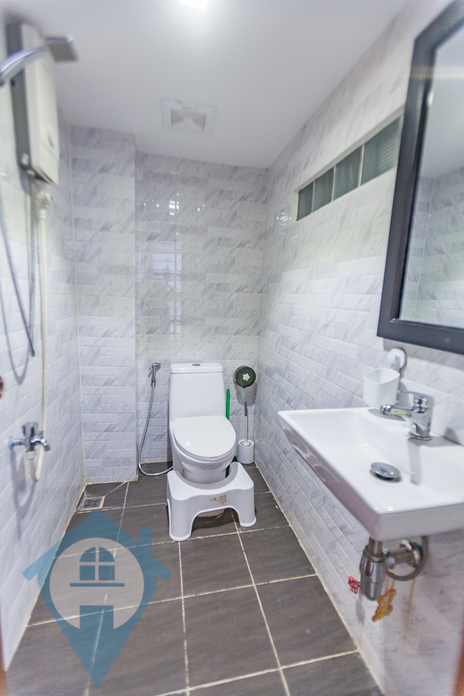 This spacious apartment for rent is located in the south of the popular BKK1 district in central Phnom Penh. The apartment is on the 2nd floor and accessed via a secure entrance a stairwell with parking for moto’s on the ground floor. The apartment comes with two bedrooms and two bathrooms and a private balcony. The apartment comes fully furnished and is designed in a modern style. This property is within walking distance of many supermarkets, cafes, restaurants and local amenities. Please quote property code : PRE002169
