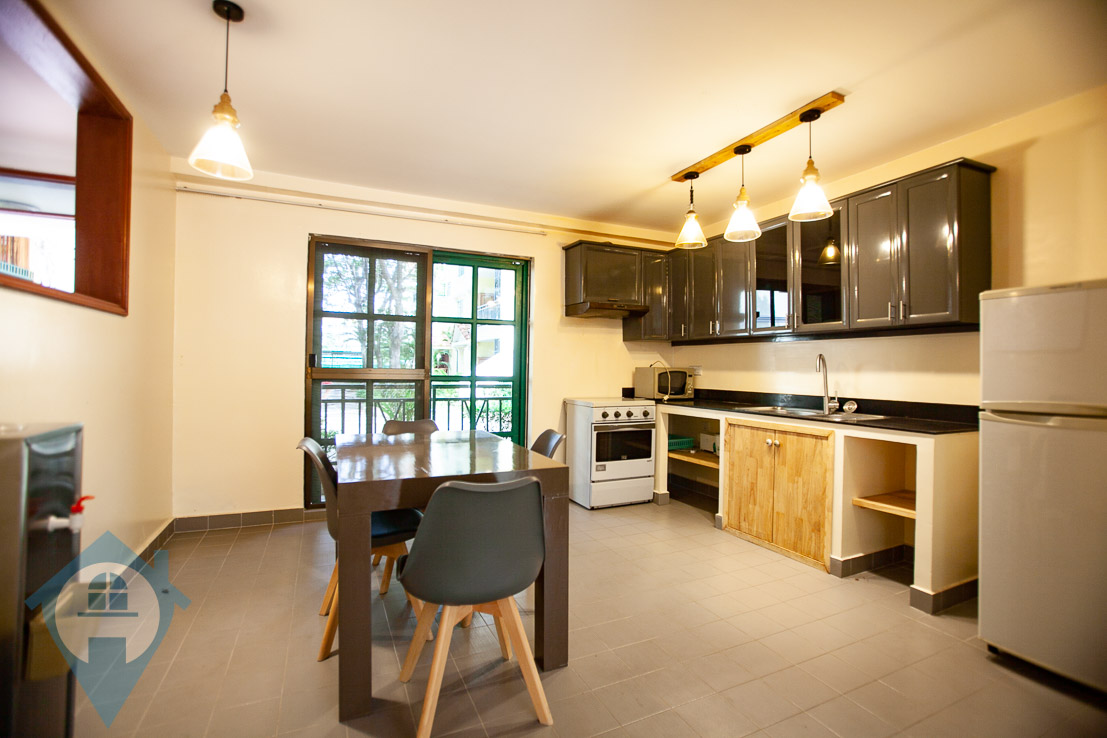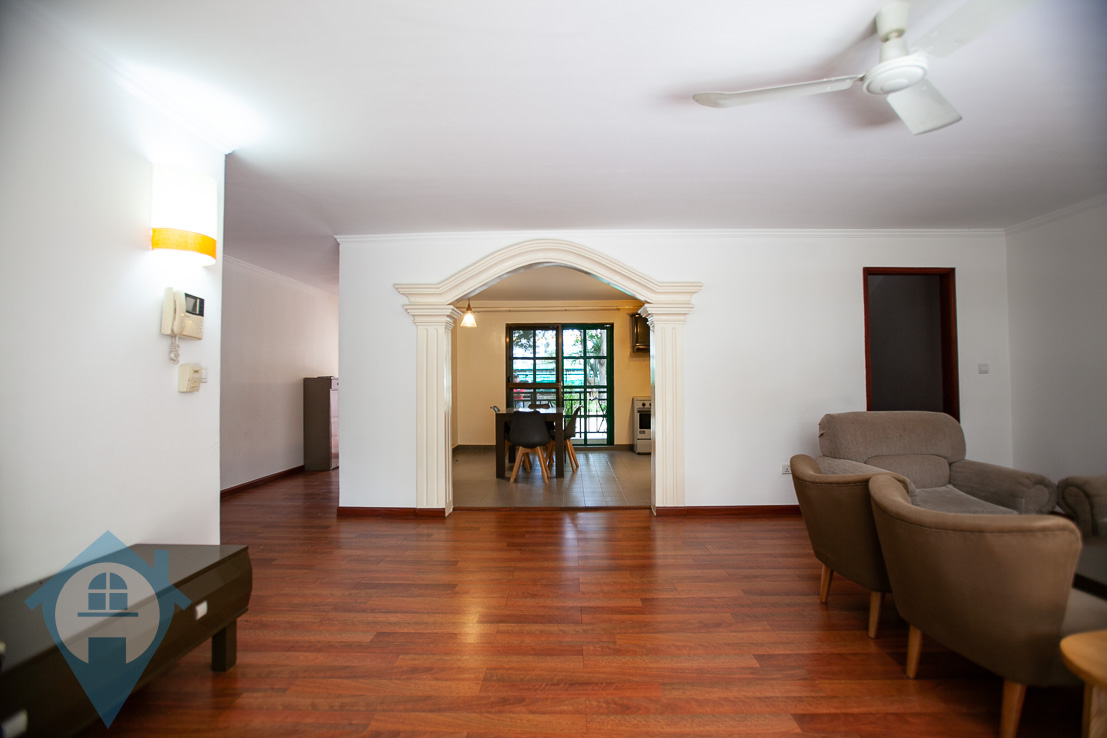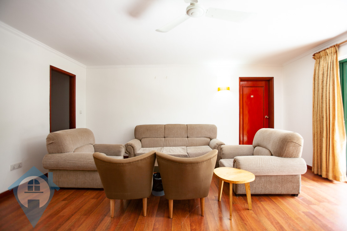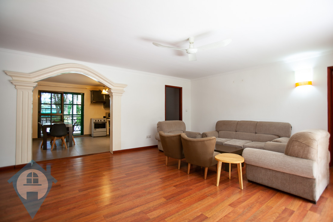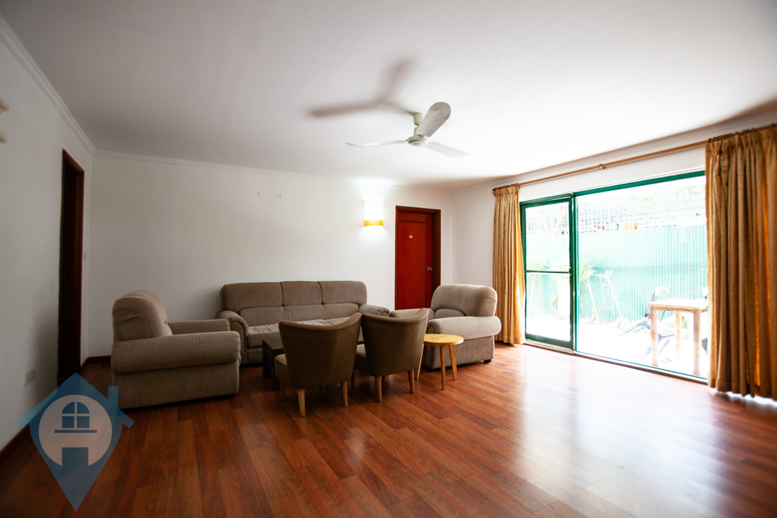 This spacious three bedroom apartment for rent is located close to the landmark Royal palace in Phnom Penh. The apartment comes with three bedrooms and two bathrooms. The property is bright and airy and comes fully furnished and fully serviced. The apartment is located in a secure compound with secure parking and 24 hour security. Being a ground floor apartment there is access to a private terrace. There is a large communal swimming pool. Please quote property code : PRE001288