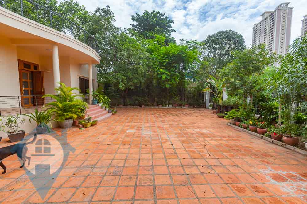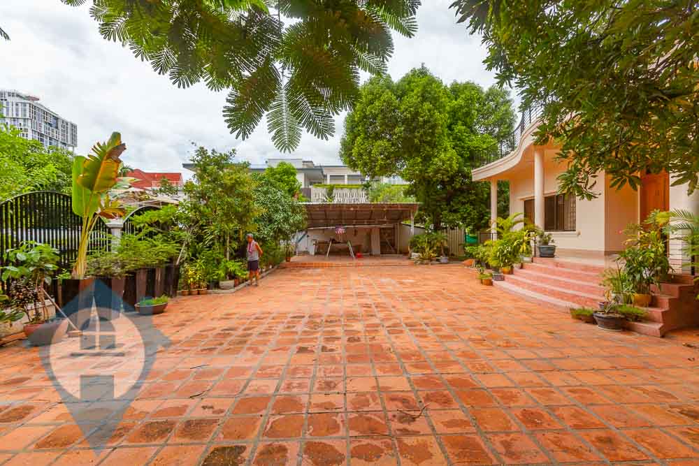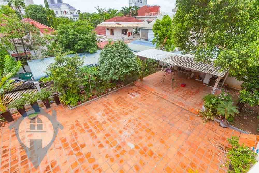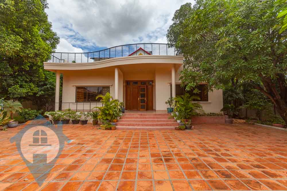 This spacious three bedroom villa for rent is located close to the bridge in the popular Chroy Chungva district of Phnom Penh. The villa comes fully furnished with three bedrooms and three bathrooms. The site is large at 30m x 40m = 1200 sqm and is a mixture of paved areas and mature gardens with various fruit trees and the interior is over 350 sqm in size. The entire roof of the villa is a large terrace with views over the surrounding countryside. This villa is only 10 minutes from the French international school Lycée français René Descartes de Phnom Penh. Please quote property code : PRE001883