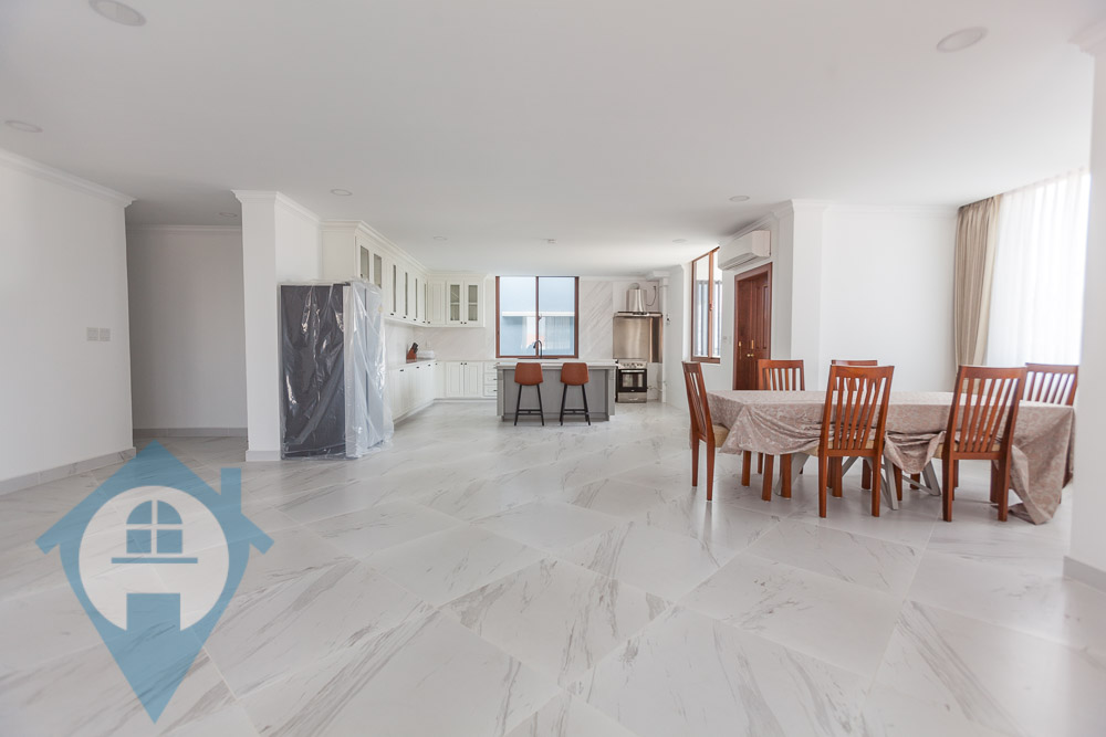 This spacious four bedroom apartment for rent is located in the central district of BKK1 in Phnom Penh. The apartment comes with four bedrooms and five bathrooms and two private balconies. The building benefits from a large ground floor swimming pool, well equipped gym and secure parking for both cars and motos. The unit comes fully furnished and fully serviced. Please quote property code : PRE001822
