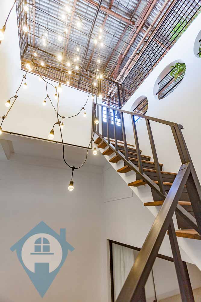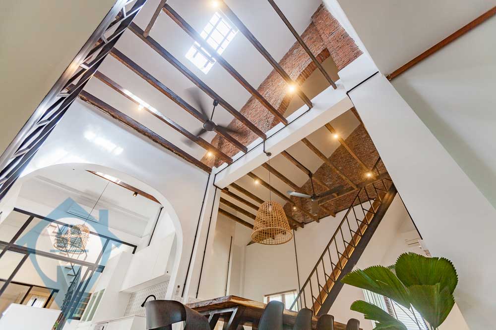 This spacious four bedroom apartment for rent is located in the heart of Phnom Penh near the landmark Independence Monument. The property comes with four en-suite bedrooms and a guest bathroom. The main apartment is on the 1st and 2nd floor plus a self contained storage / 5th bedroom is on the ground floor. The apartment has been tastefully decorated featuring exposed red brick walls and original wooden ceiling beams. The ceilings are high and the property has lots of natural light and a modern fitted kitchen has been added. There is a good sized balcony on the 1st floor and the rooftop is a large private terrace. The entrance is clean and secure and secure parking is available close by. Please quote property code : PRE001871