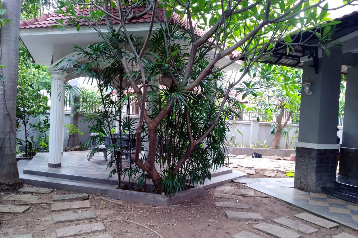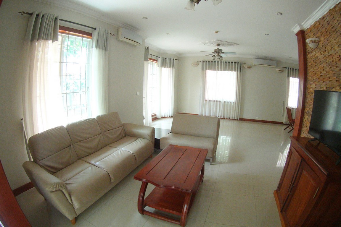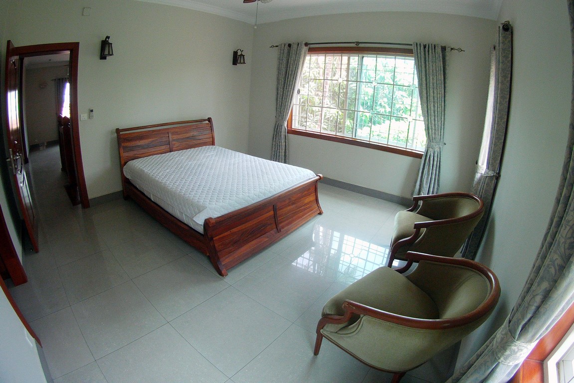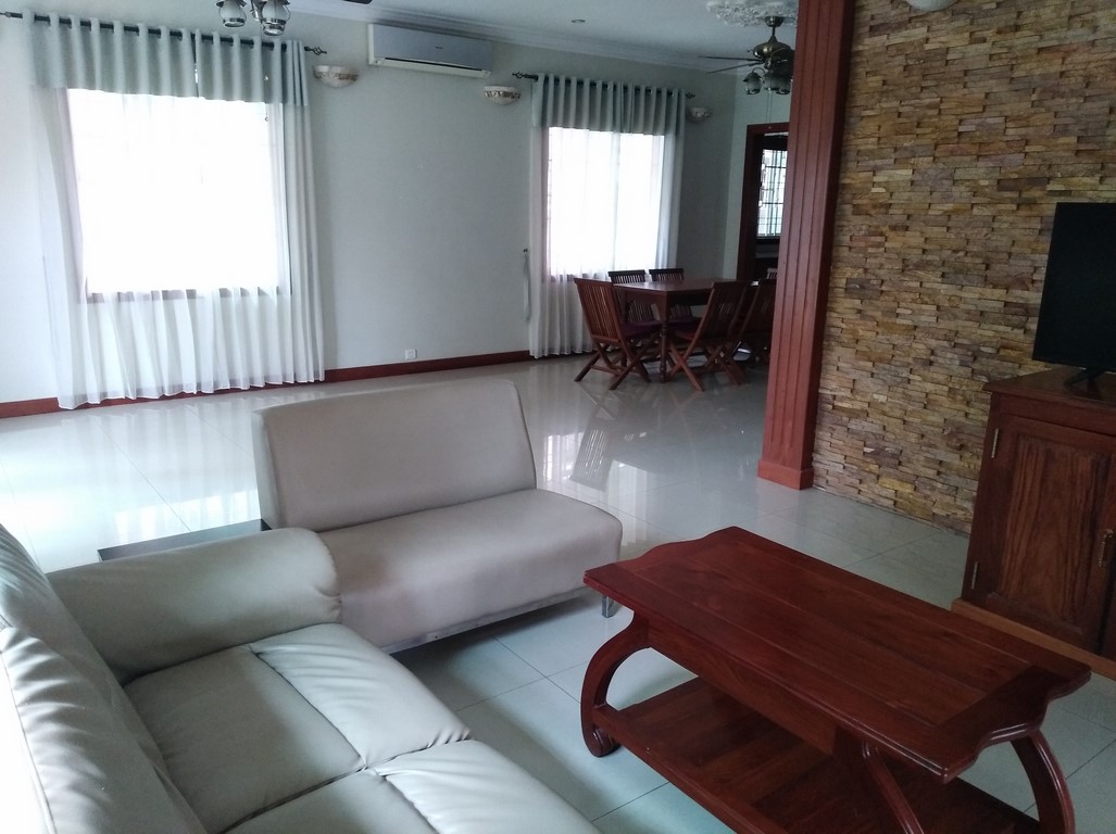 Located in a residential complex, a Borey. This spacious villa offers a large living dining area on the ground floor, a huge garden and car park. On the 1st floor, one master bedroom has an ensuite bathroom with bathtub and shower, two bedrooms with a shared bathroom. Next to the main villa, outbuilding with 1 bedroom and a shower. Located over the Japanese bridge, 10 minutes from wat phnom, the French school and Riverside, the villa is in the safe environment. Partially furnished. Rental + management fees + garbage collection Please mention code N°501 Contact by email and text: English or French Contact by phone : khmer Please mention code N°501